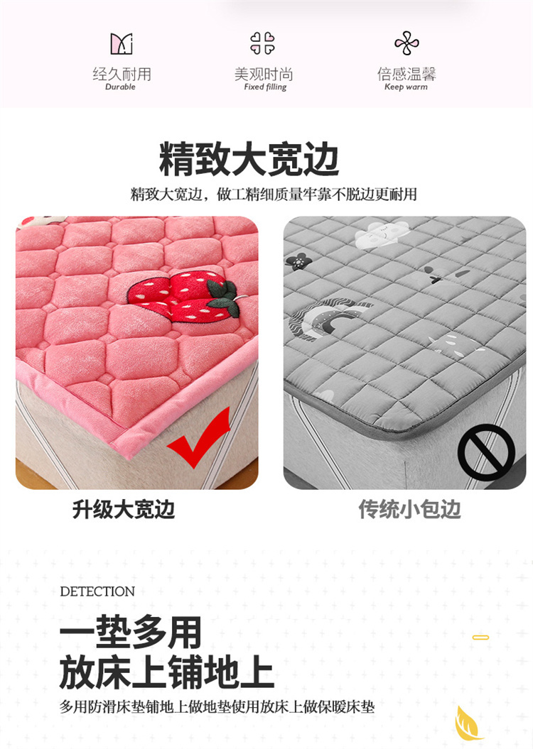 当前位置: 91家纺网 > 商品网购 > 床垫/床褥/床护垫 > 普通床垫 > 东宇床垫 2022新款加厚牛奶绒床垫 草莓派对