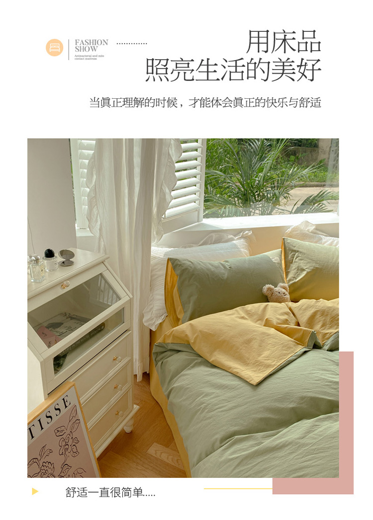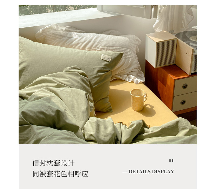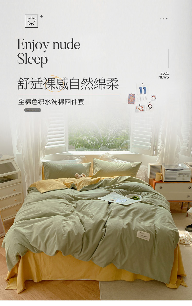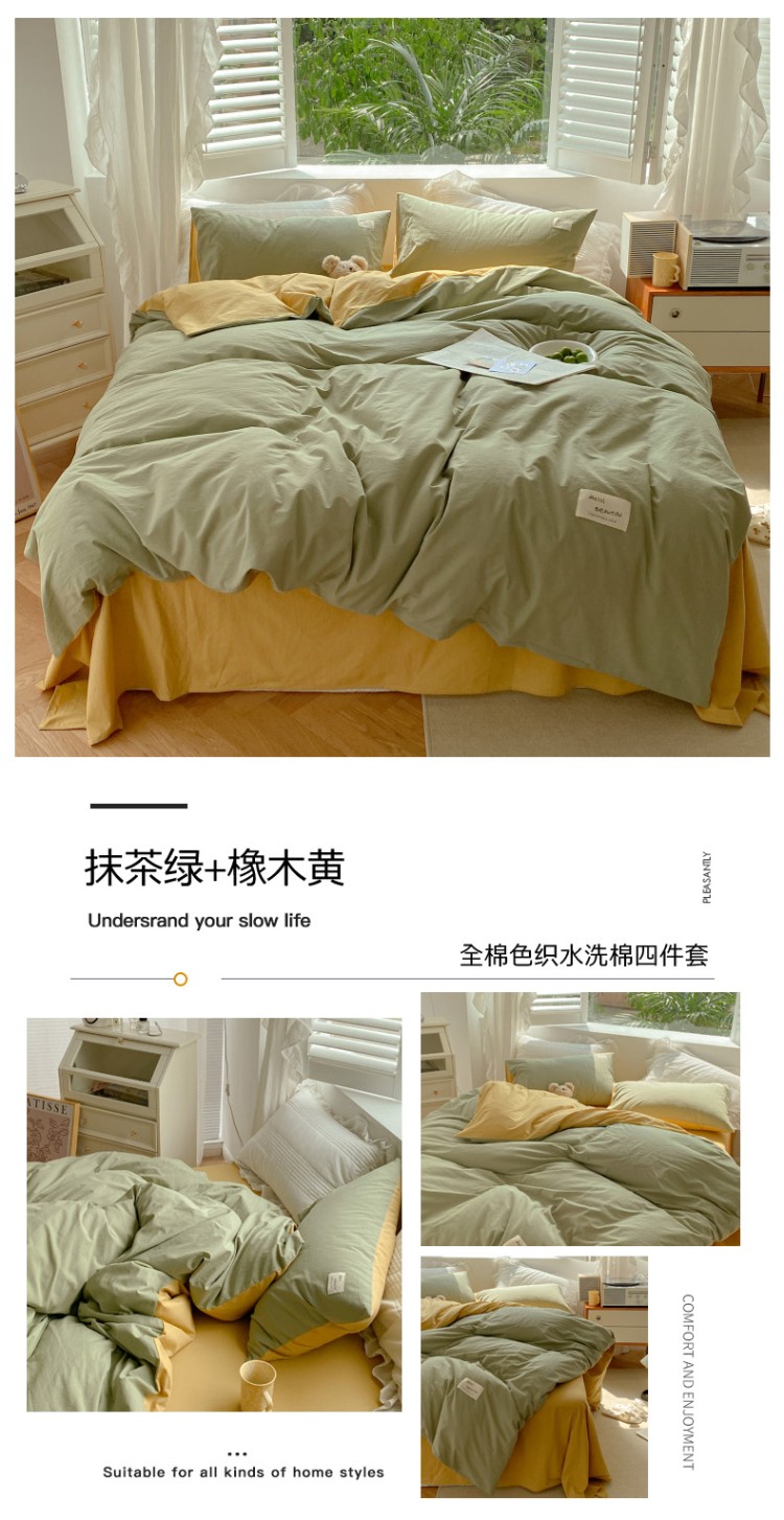 当前位置: 91家纺网 > 商品网购 > 床品套件 > 四件套 > 水洗棉四件套 > 寐居 2021水洗色织全棉四件套 抹茶绿+橡木黄