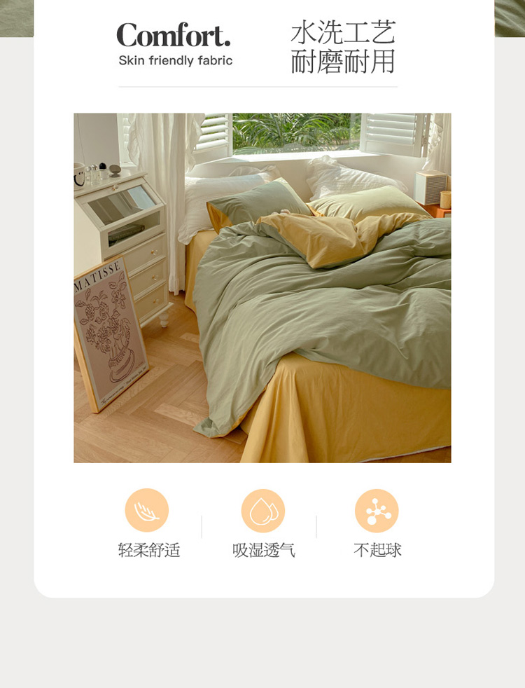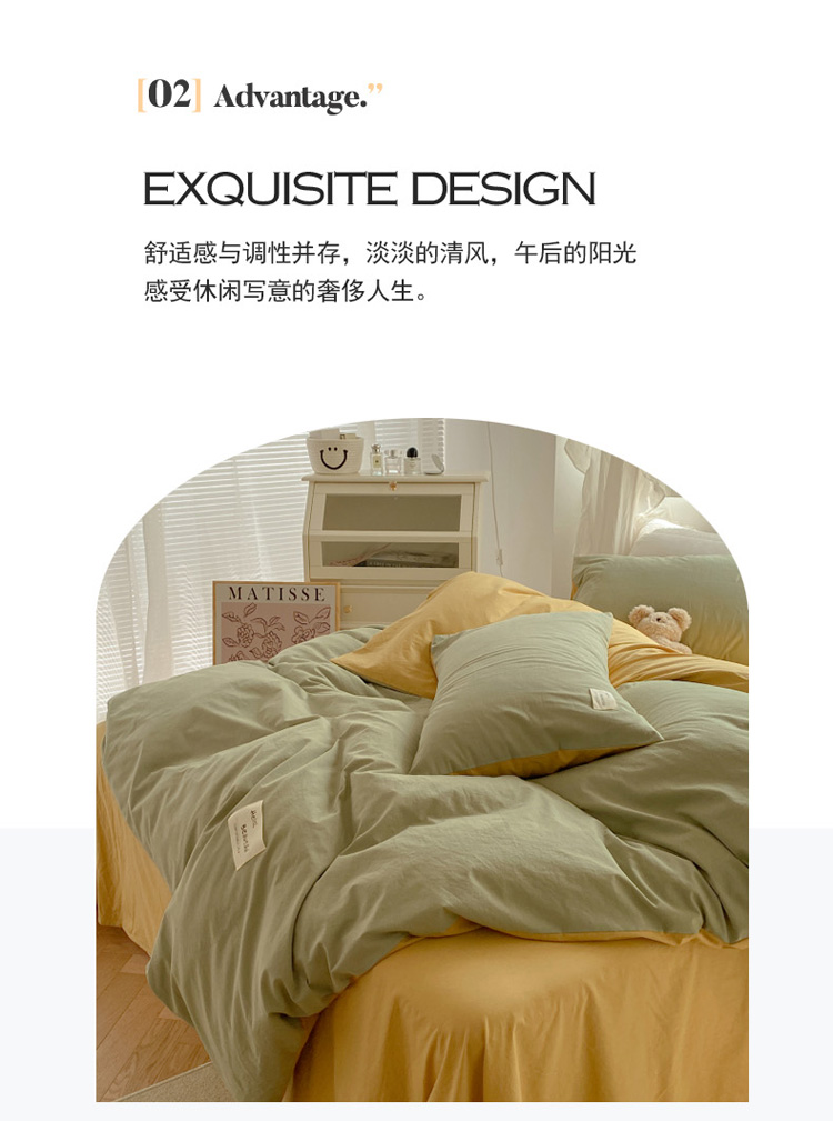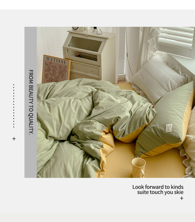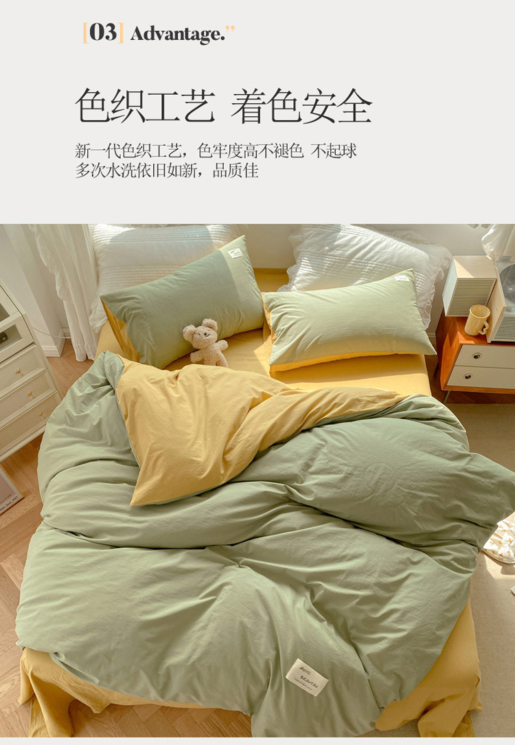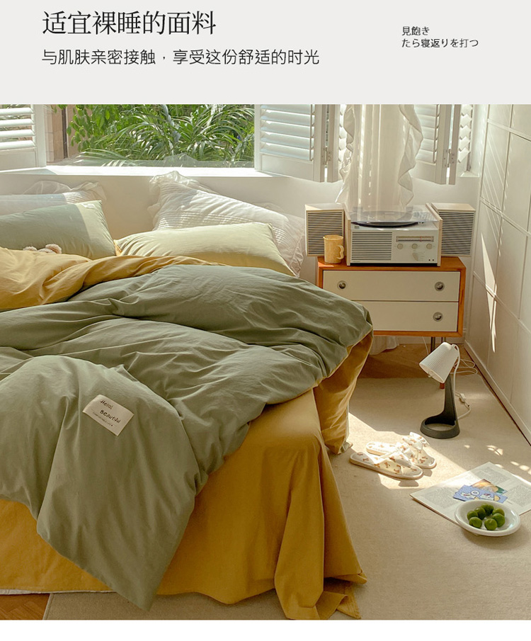 当前位置: 91家纺网 > 商品网购 > 床品套件 > 四件套 > 水洗棉四件套 > 寐居 2021水洗色织全棉四件套 抹茶绿+橡木黄