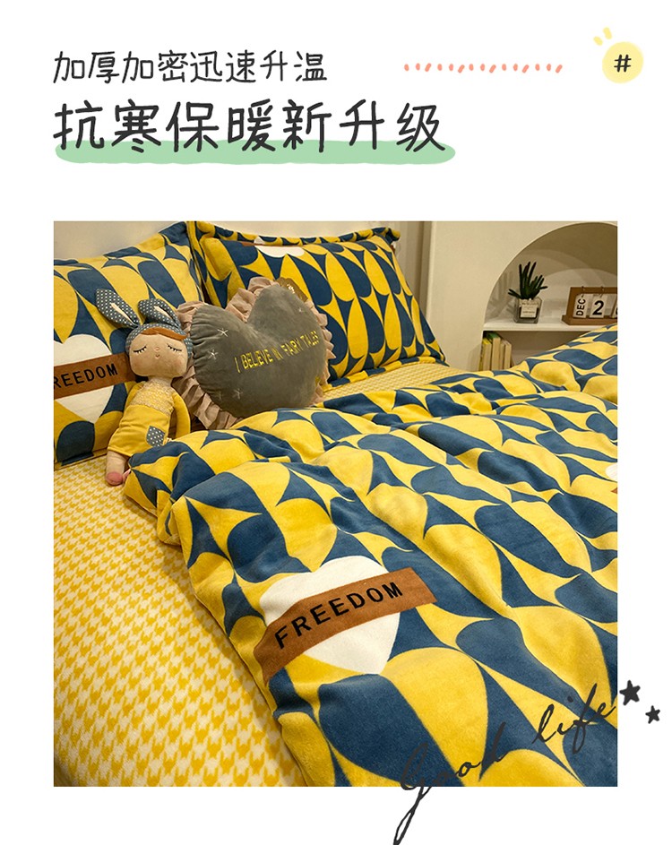 商品名称:珺柔家纺2021新款牛奶绒印花四件套 小心心
