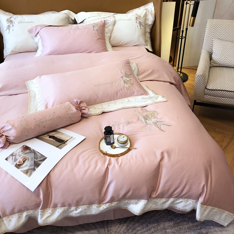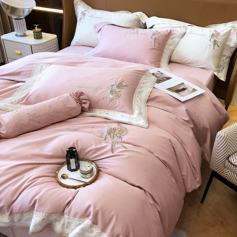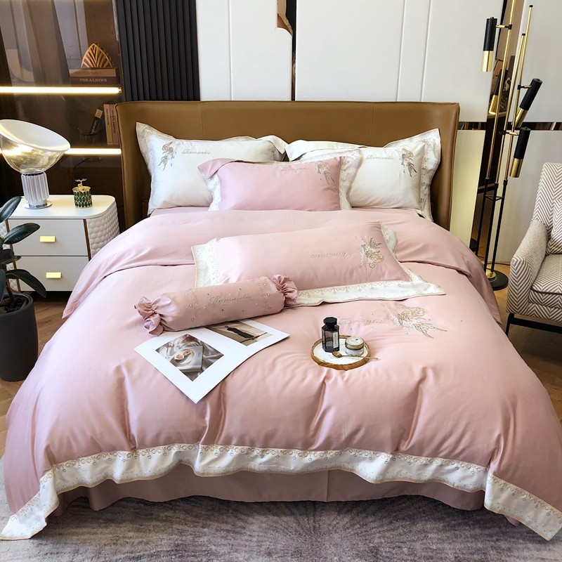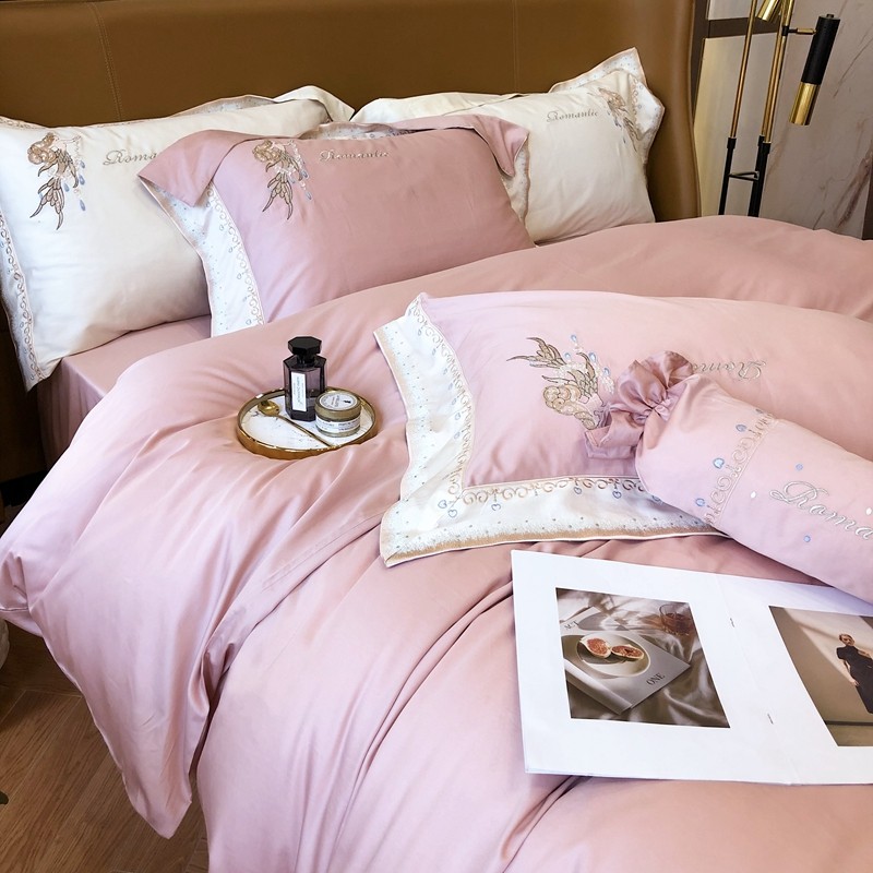 馨蕊家居秋冬新品100支澳棉四件套高定系列-美人鱼 豆蔻粉