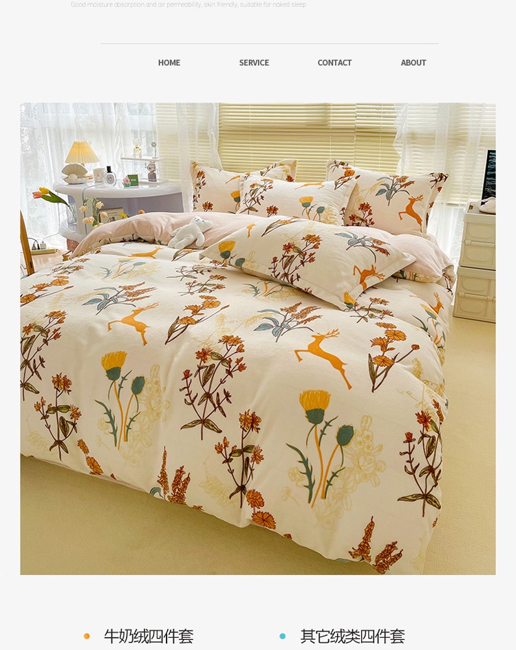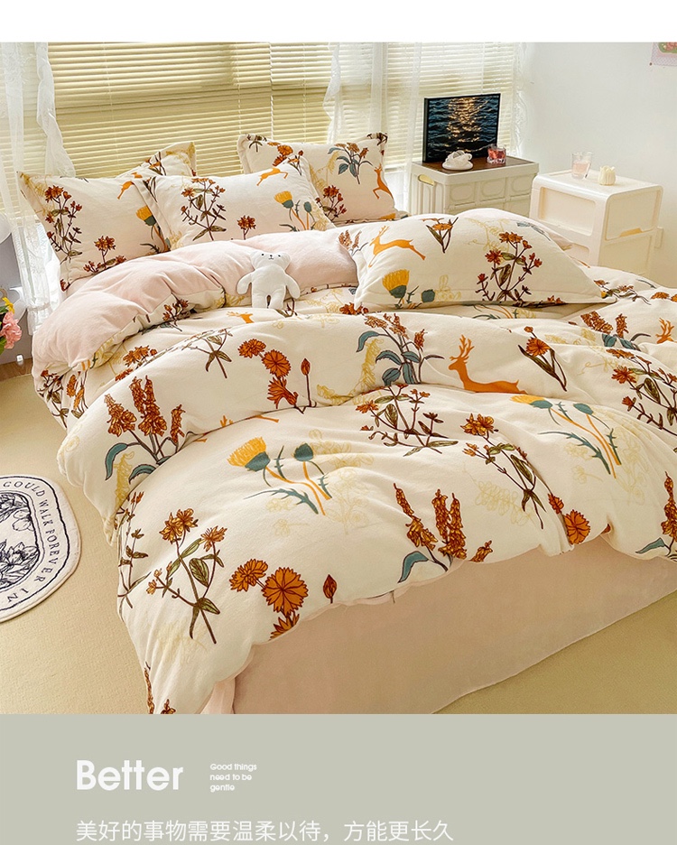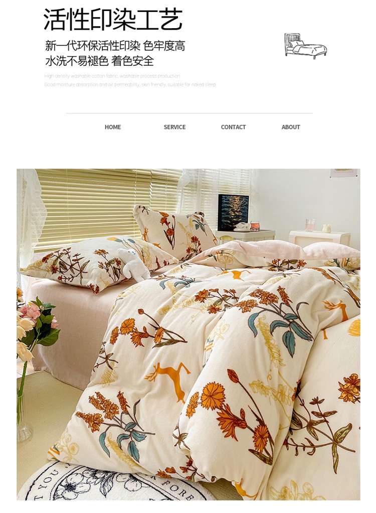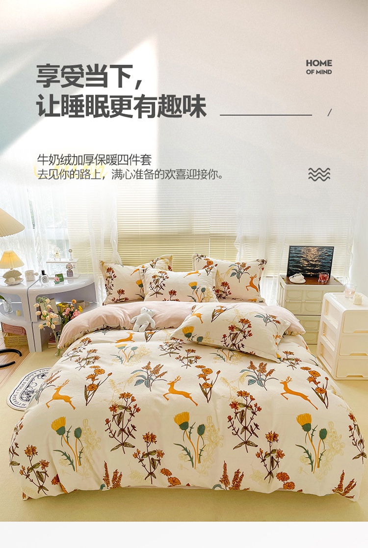 当前位置: 91家纺网 > 商品网购 > 床品套件 > 四件套 > 牛奶绒四件套 > 慕尚2022新款田园花卉类牛奶绒四件套 美好时光