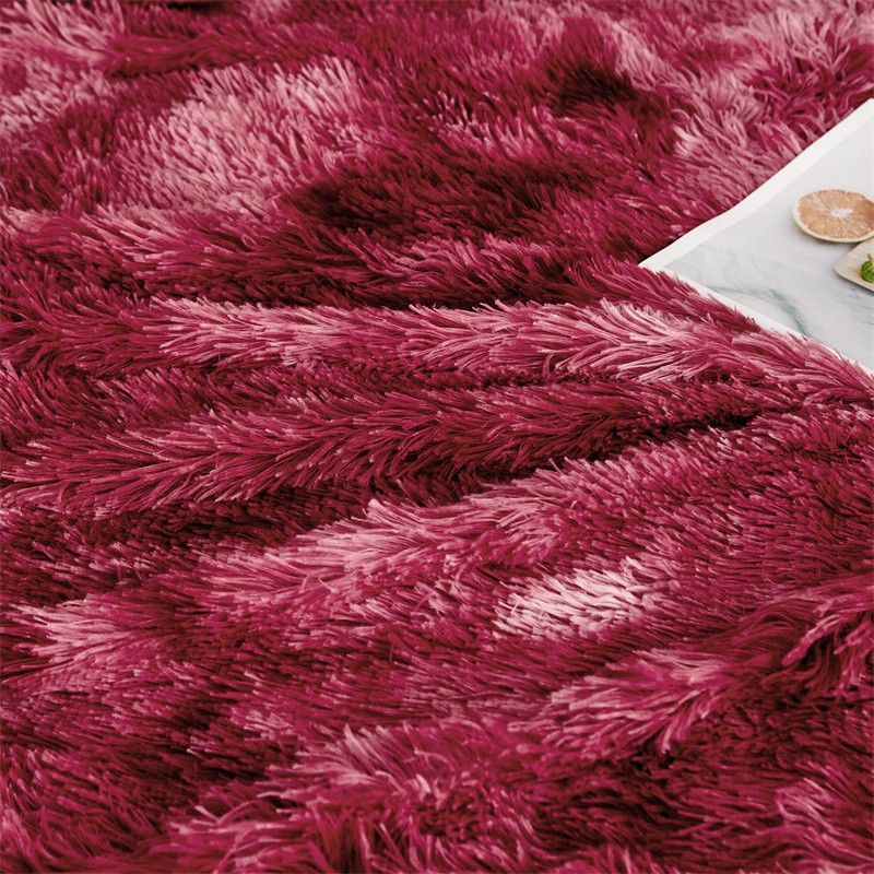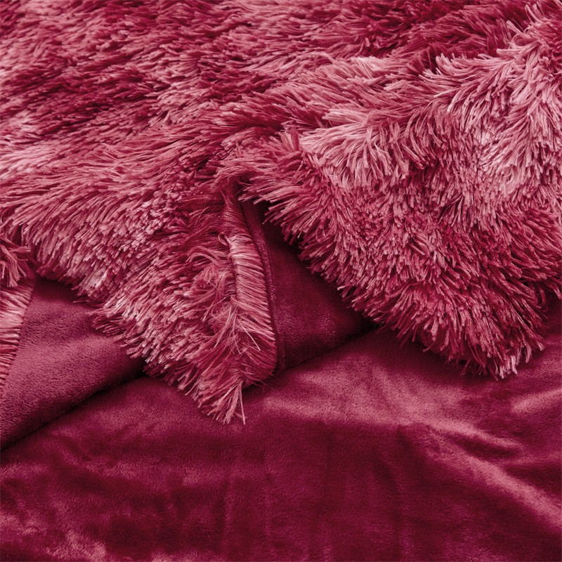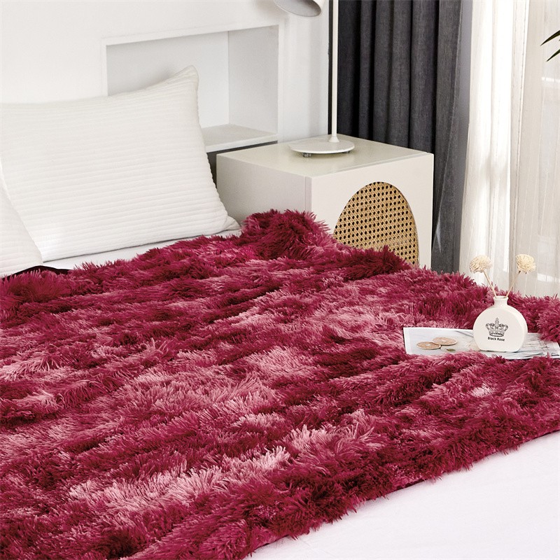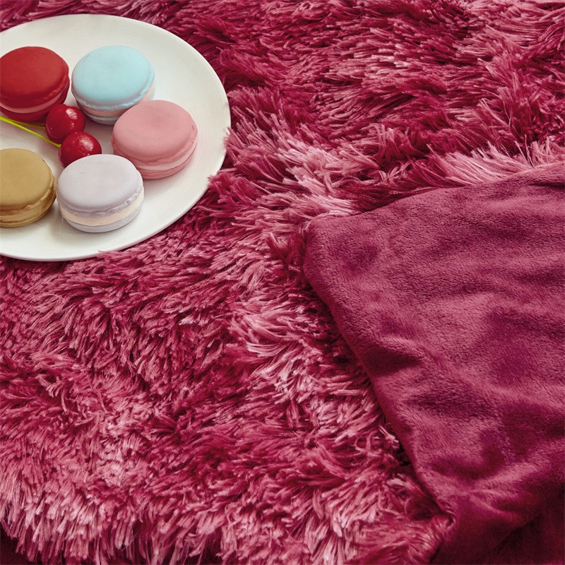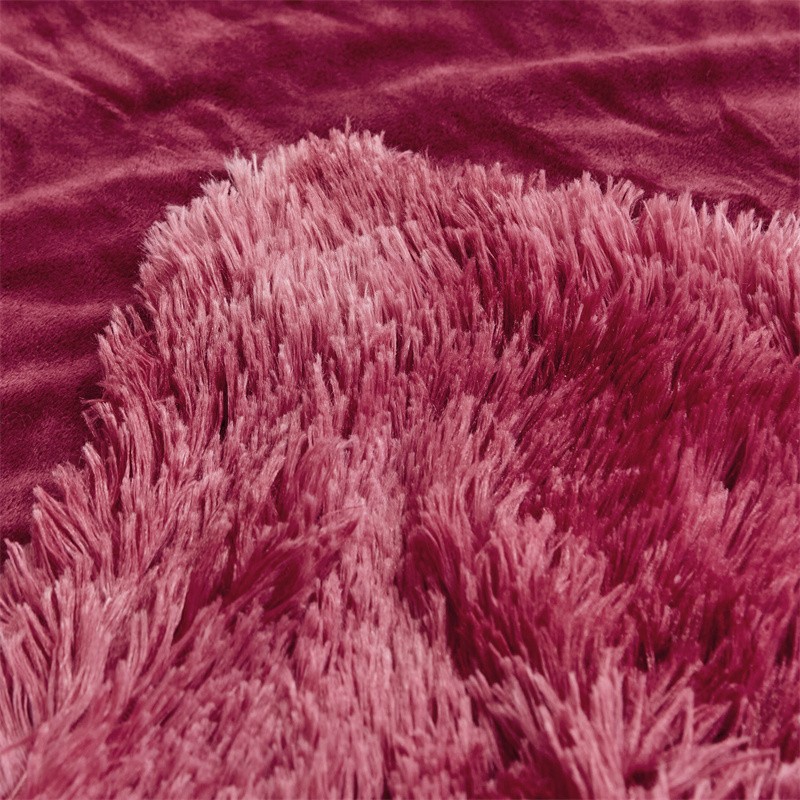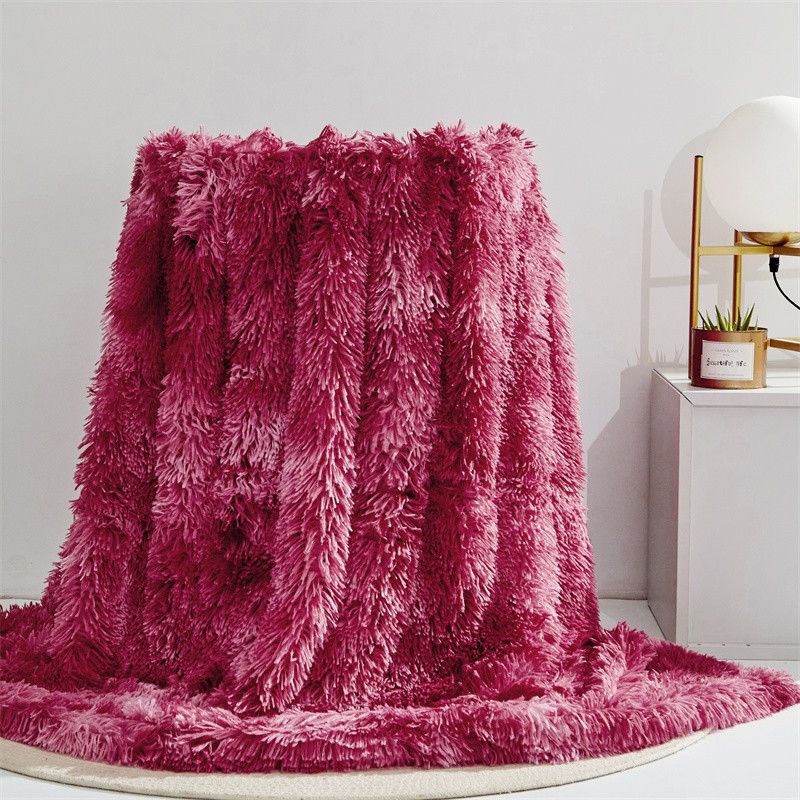 品尚嘉 水貂绒毛毯长毛绒法莱绒双层跨境外贸毯子 扎染-酒红