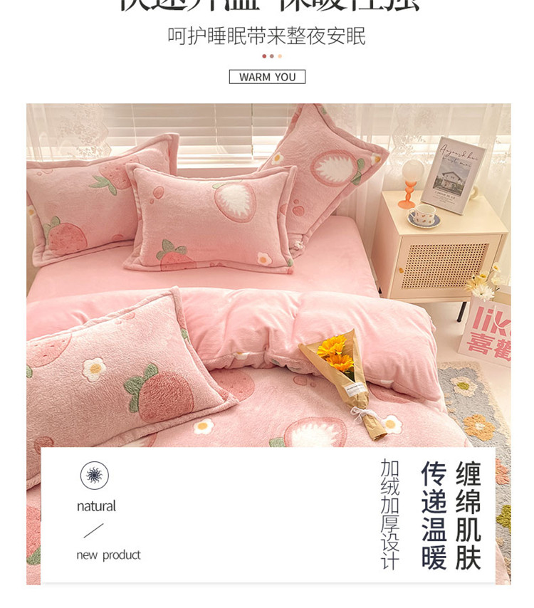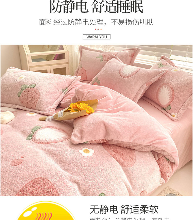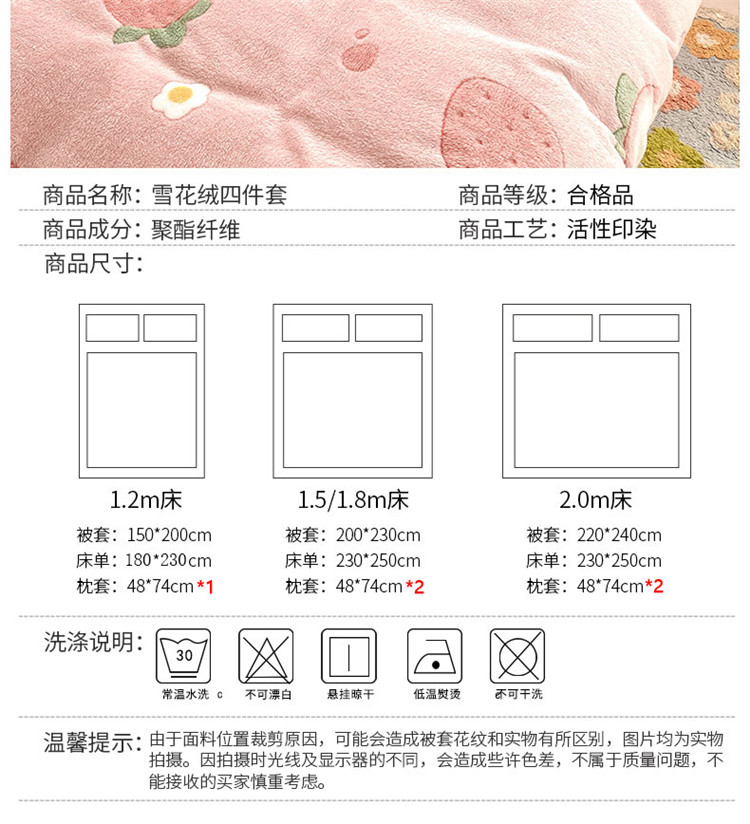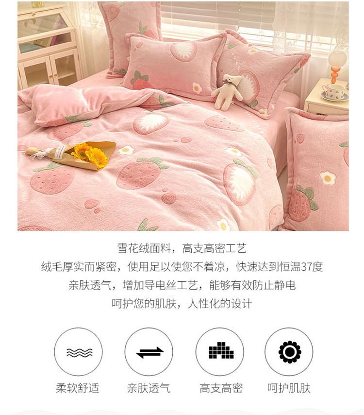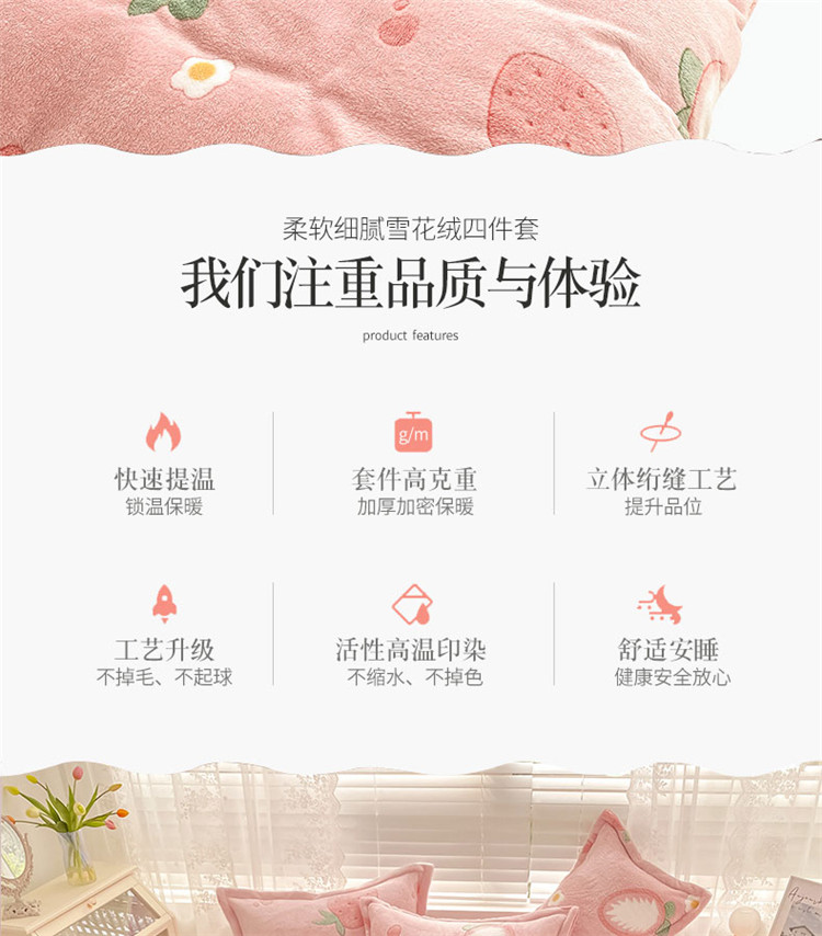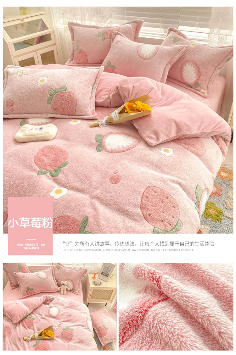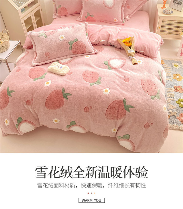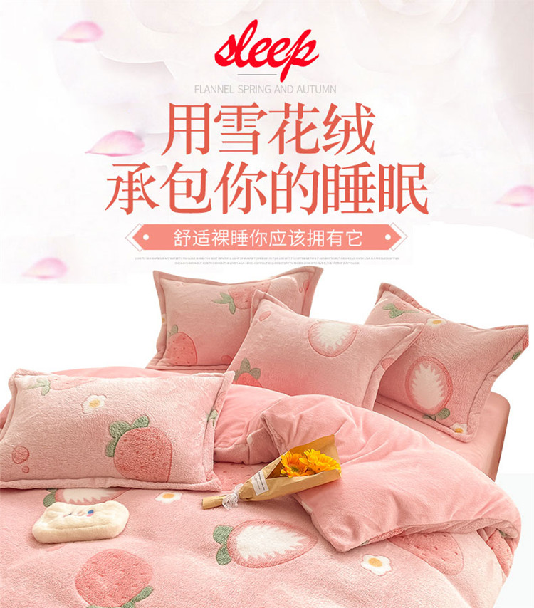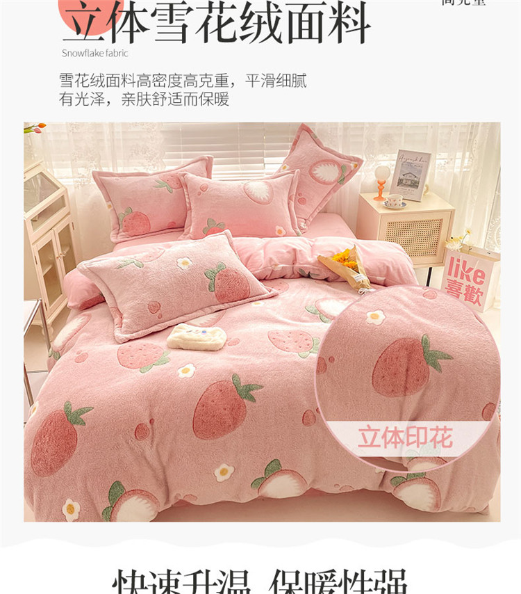 当前位置: 91家纺网 > 商品网购 > 床品套件 > 四件套 > 磨绒四件套 > 川悦生活 2021新款立体雪花绒四件套直播供货 小草莓粉