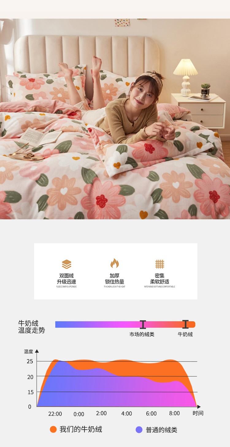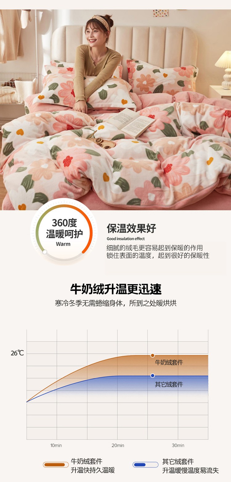 当前位置: 91家纺网 > 商品网购 > 床品套件 > 四件套 > 牛奶绒四件套 > 寐居家纺 2021新款印花牛奶绒四件套浅色调 花田