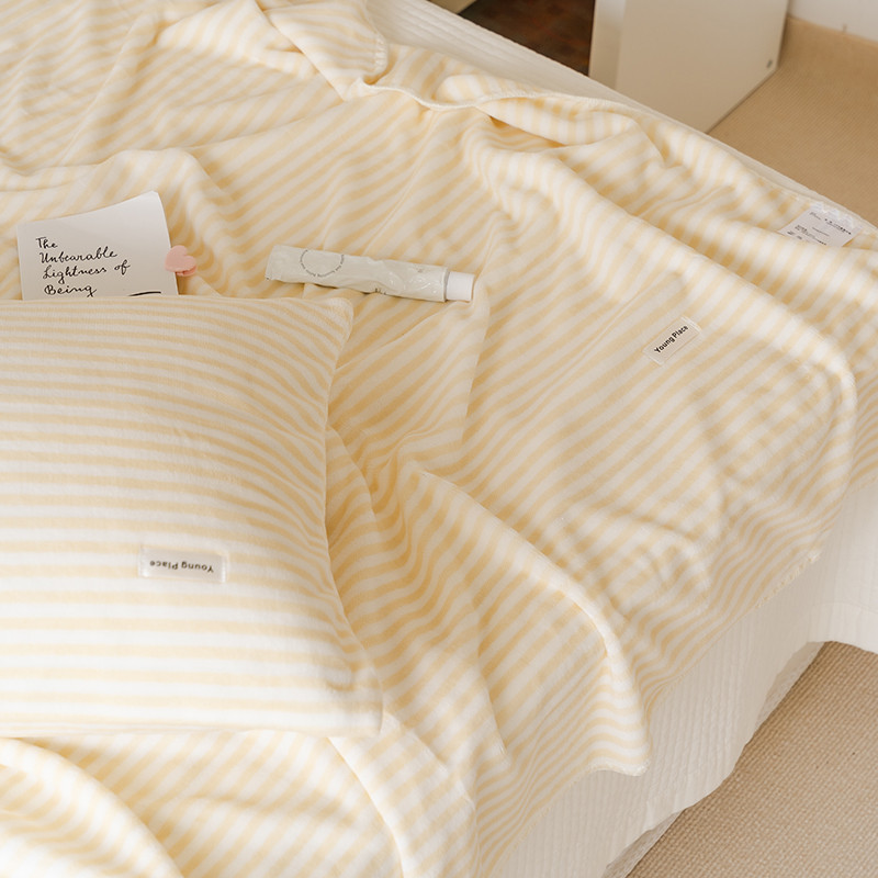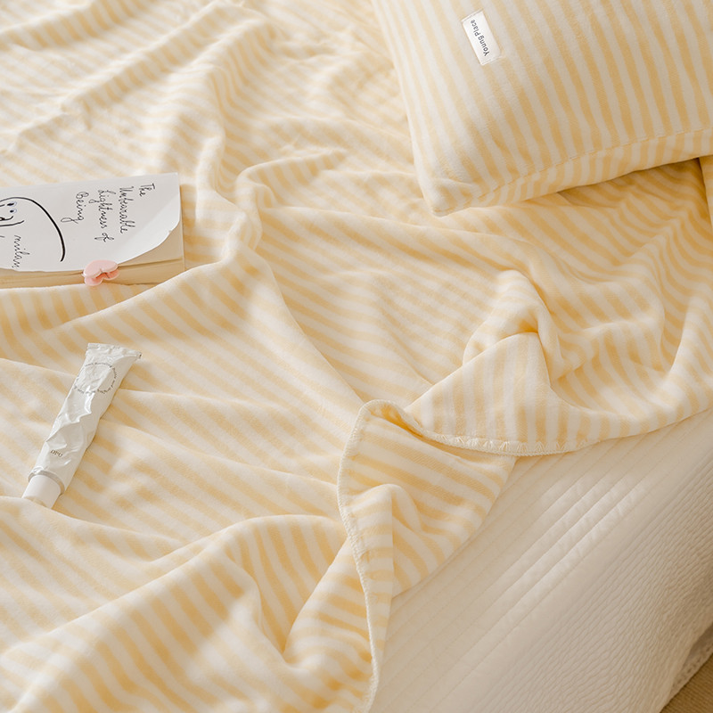 洋铭区 2021新款牛奶绒彩虹条毯子系列 彩虹黄