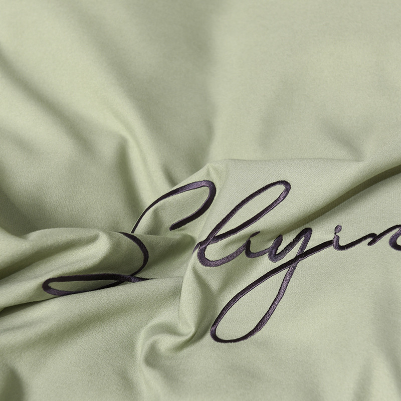 孟鑫家纺 2021新款加厚纯色刺绣磨毛四件套 薄荷绿