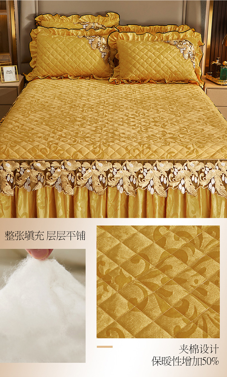 商品名称:网红馆2025新款天鹅绒夹棉单床裙 浅忆拾光-鹅黄