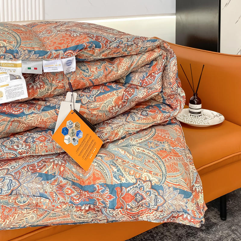 商品名称:匠心 2021新款印花鹅绒被 魅色-橘色