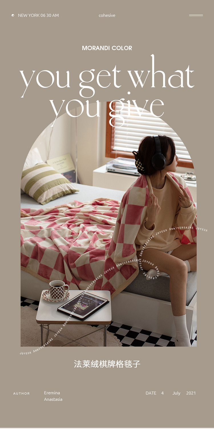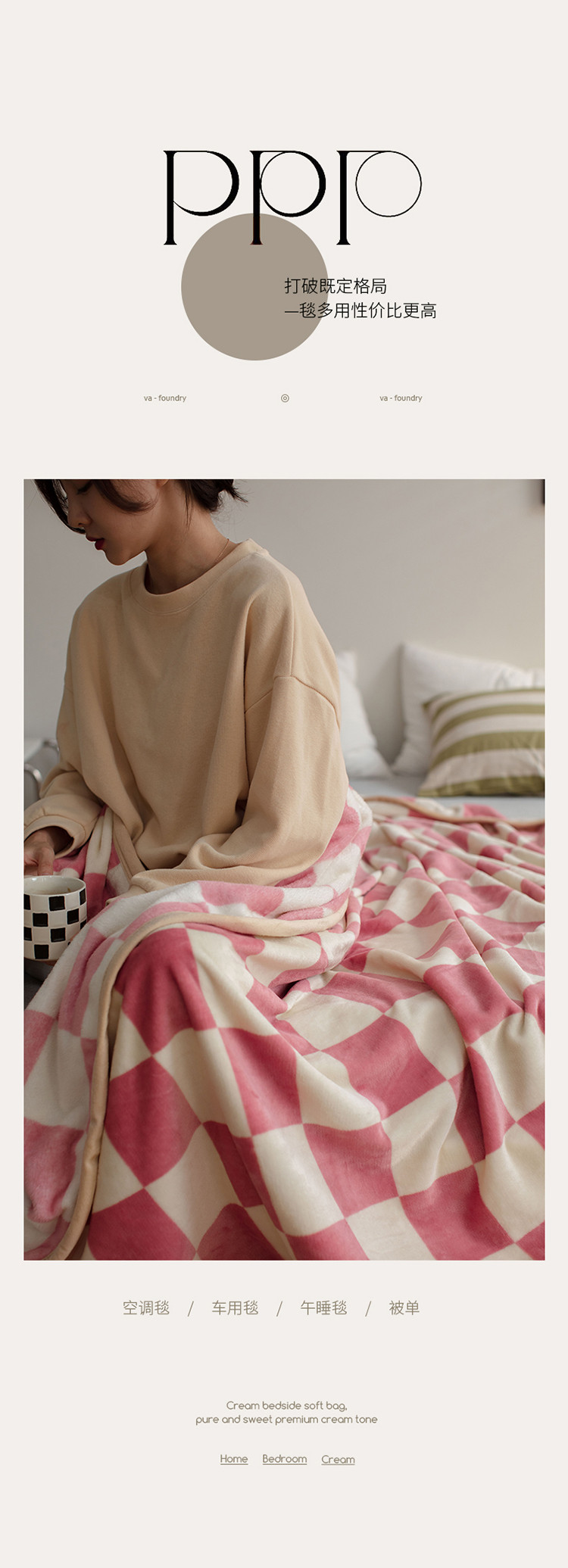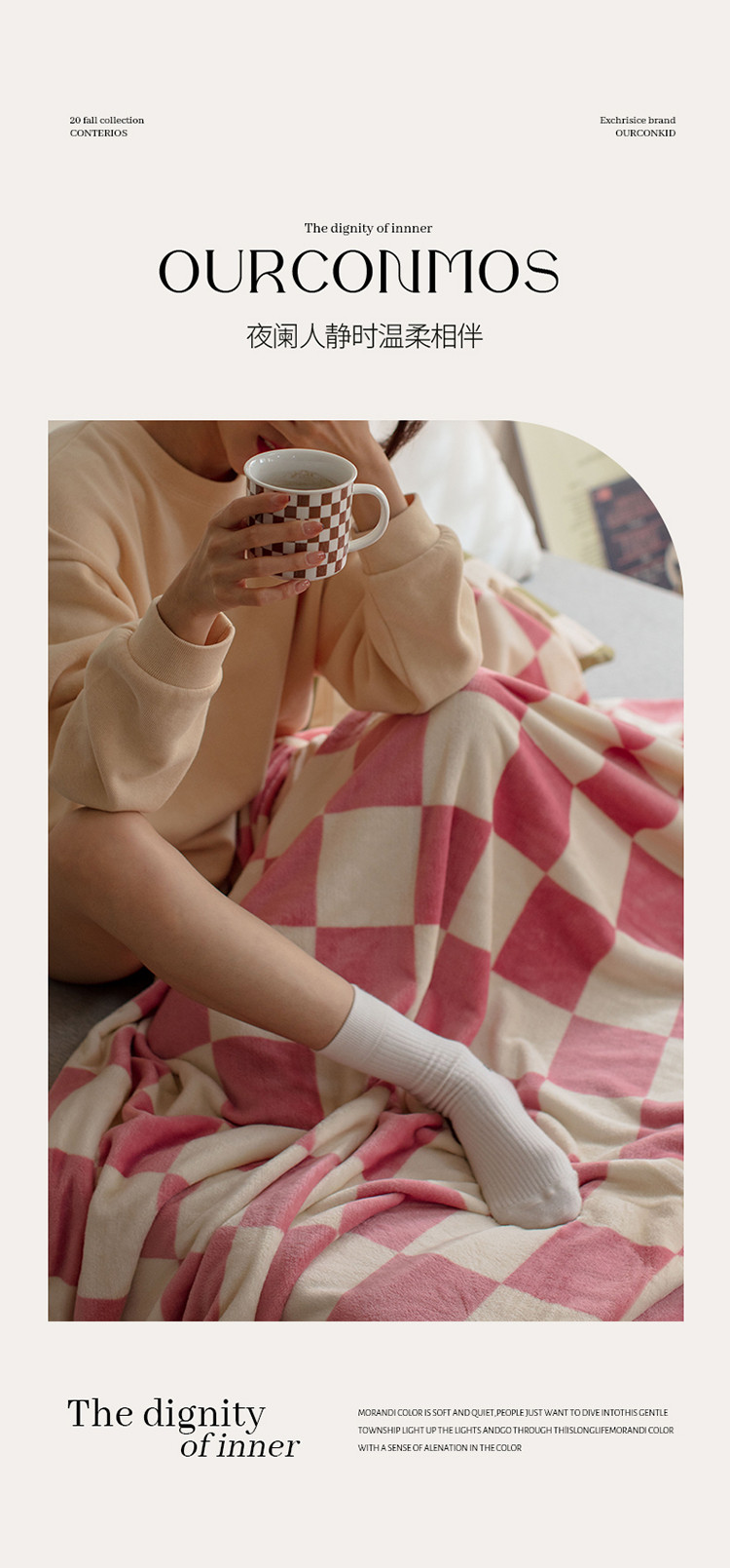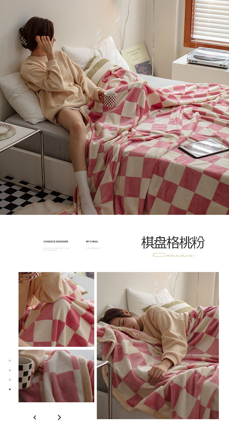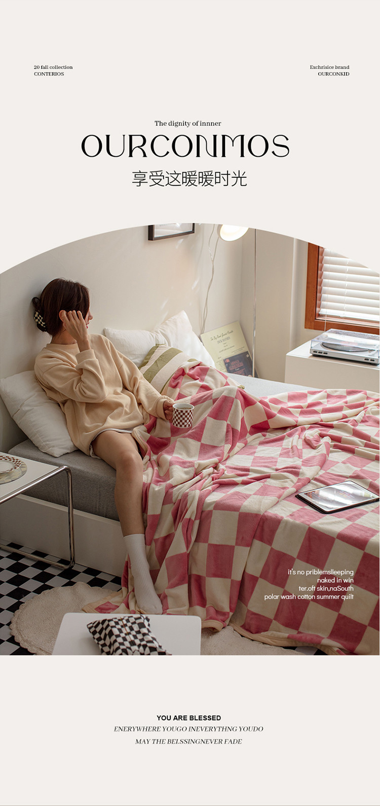 商品名称:寐眠2021新款法莱绒棋牌格毛毯 棋盘格桃粉
