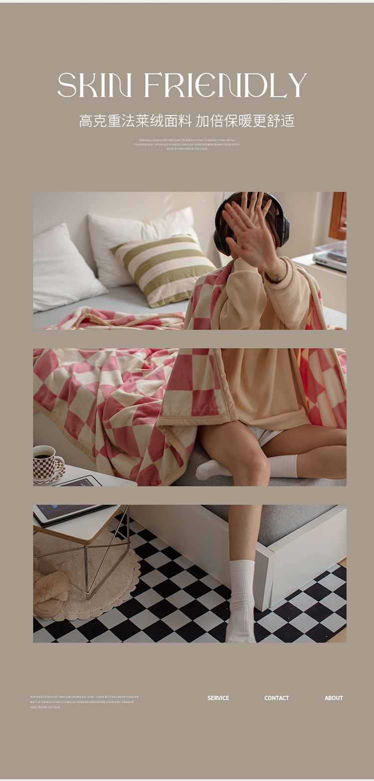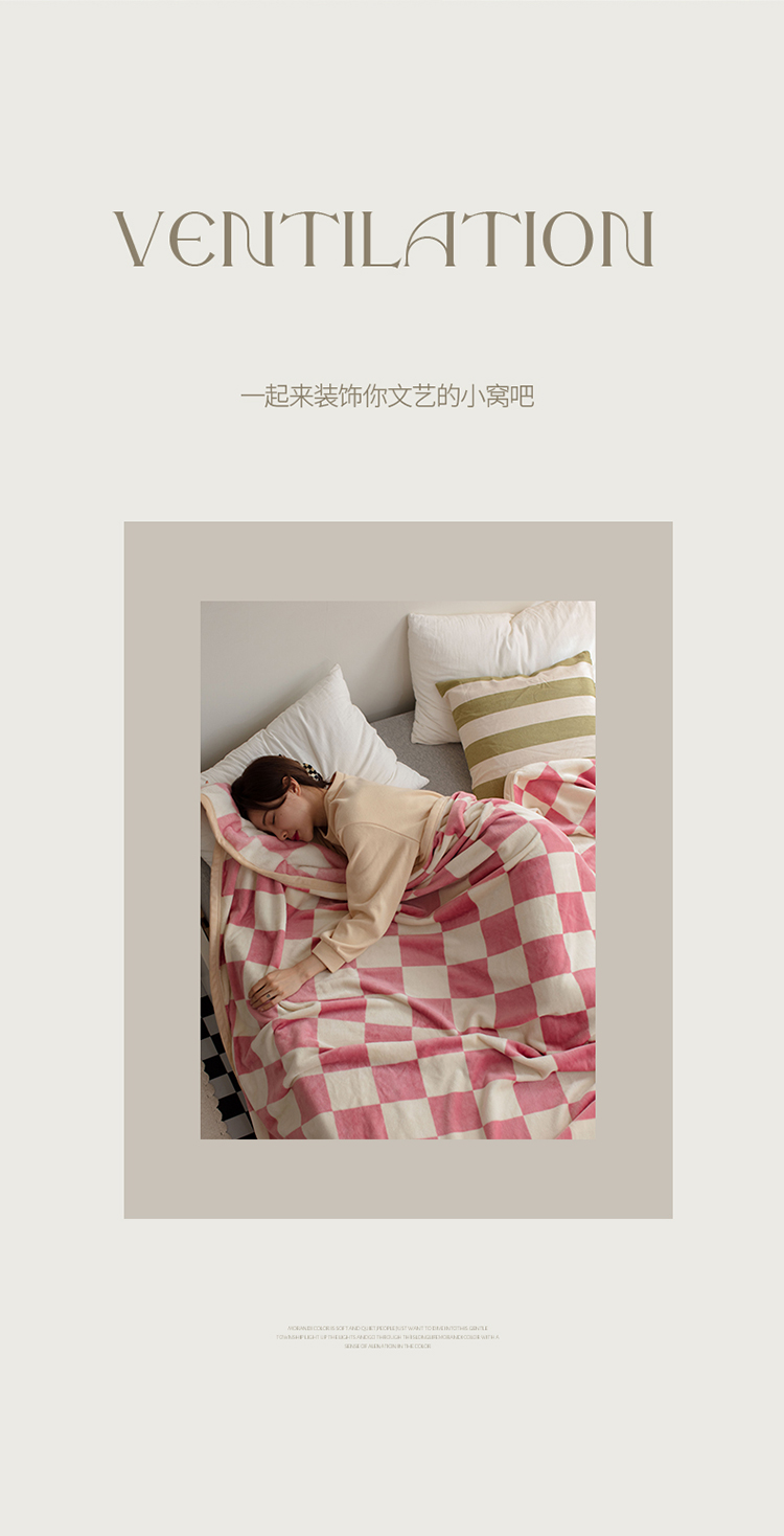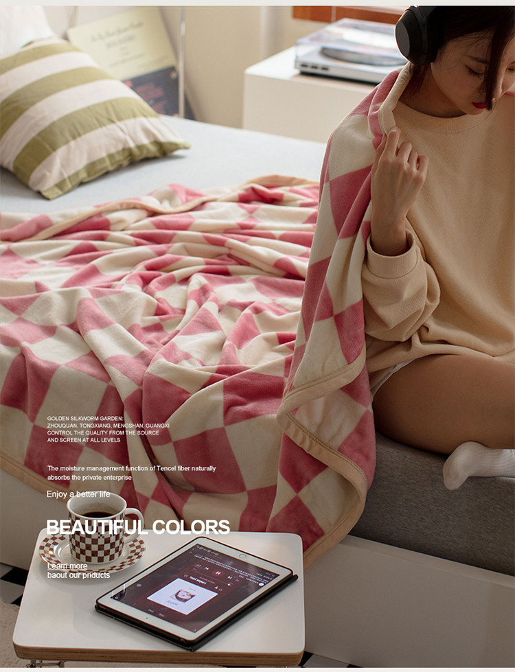 寐眠2021新款法莱绒棋牌格毛毯 棋盘格桃粉