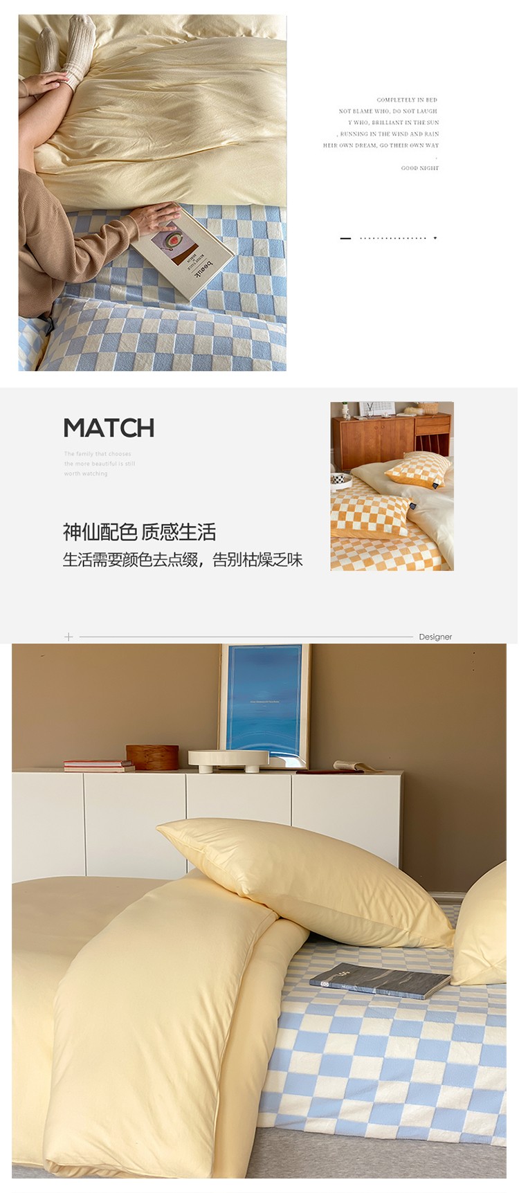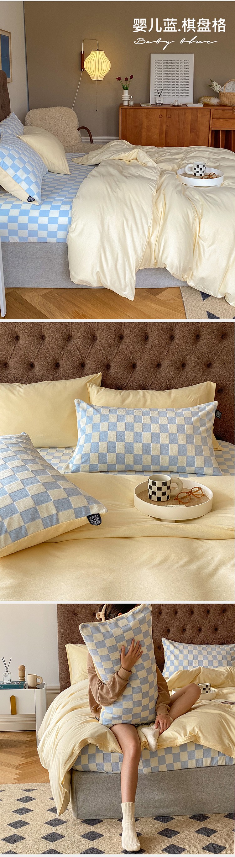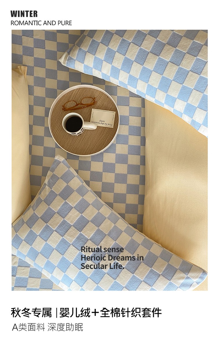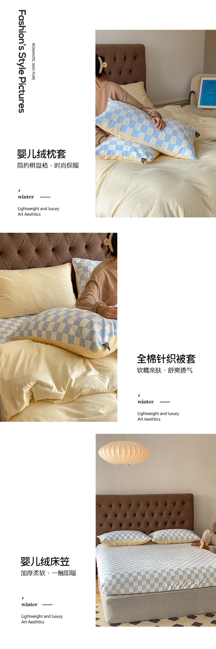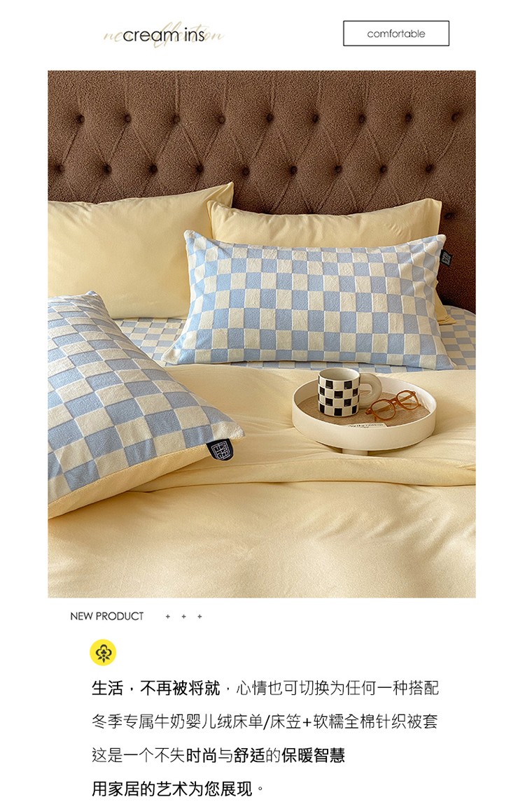 商品名称:风向标 新款针织婴儿绒棋盘格床笠款四件套 套件-婴儿蓝棋盘格