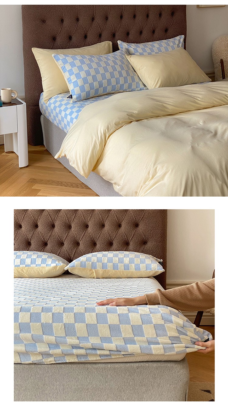 风向标 新款针织婴儿绒棋盘格床笠款四件套 套件-婴儿蓝棋盘格