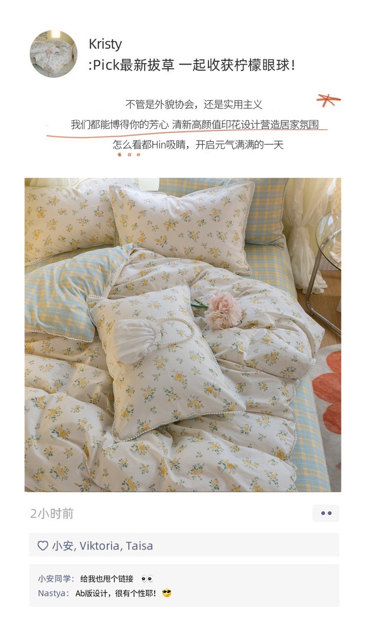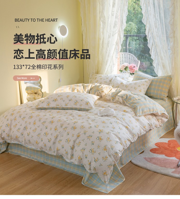 商品名称:千朵 2021新款13372全棉印花四件套 向阳花语