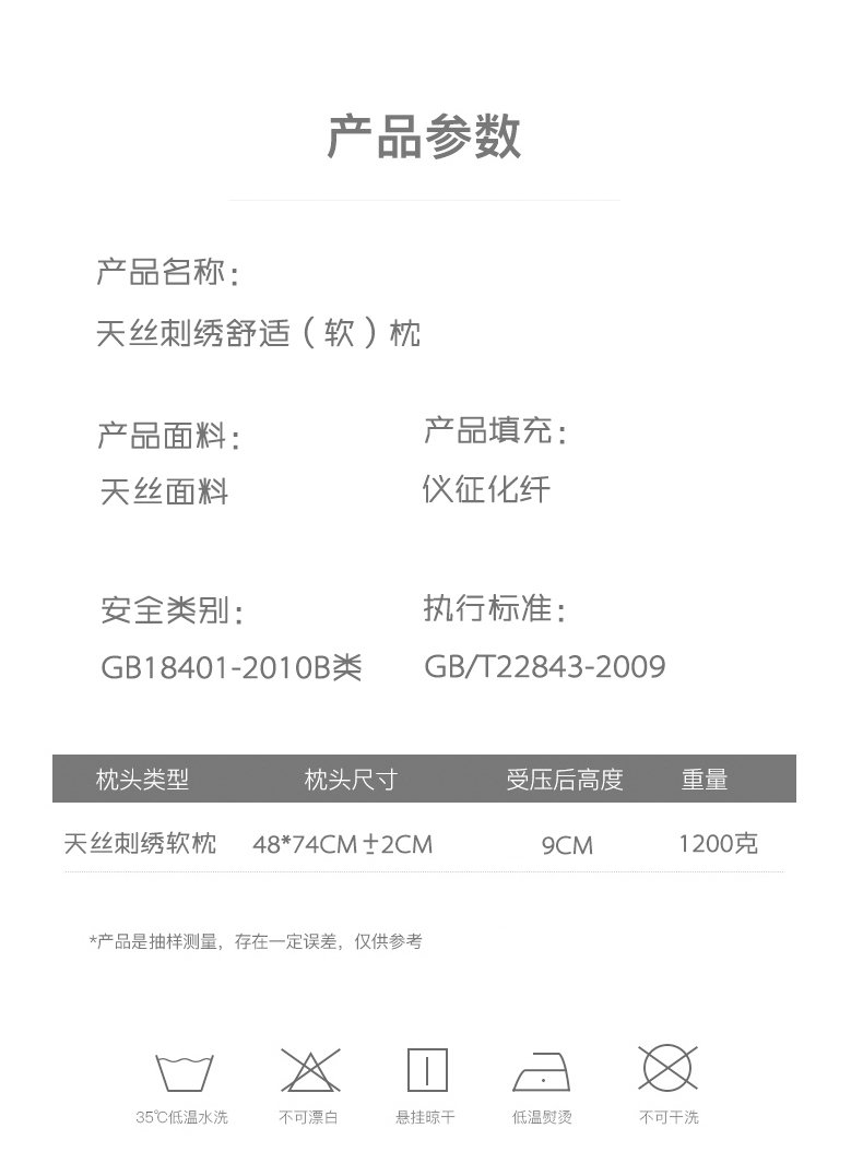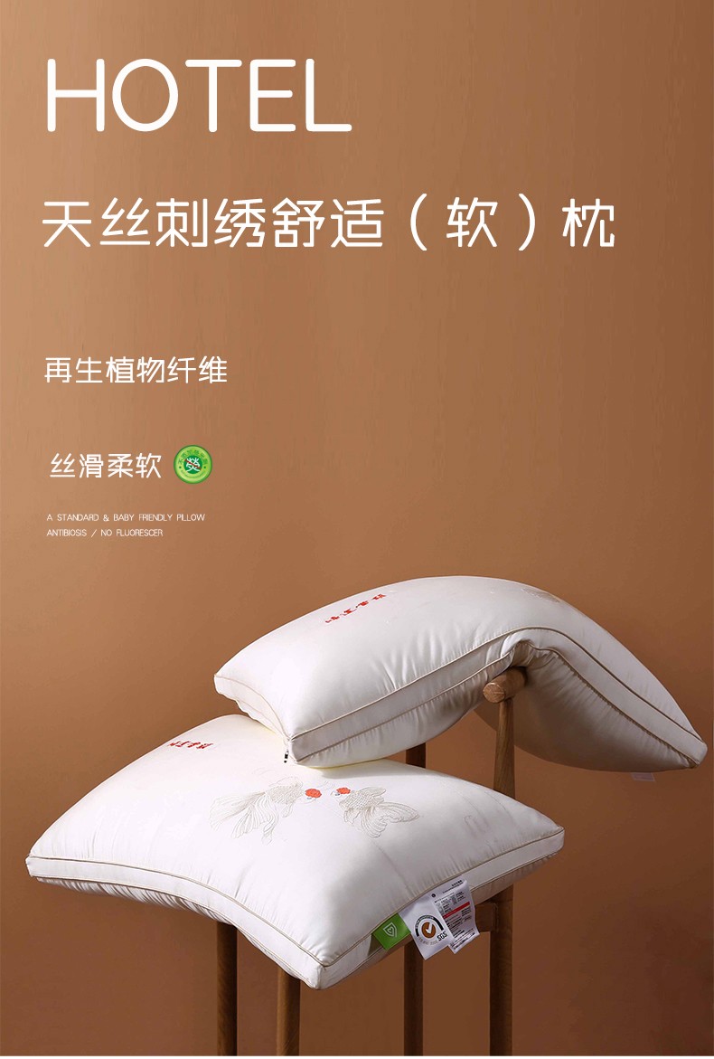 商品名称:2022新款天丝刺绣仪征羽丝绒酒店枕芯护颈水洗枕头单人软枕