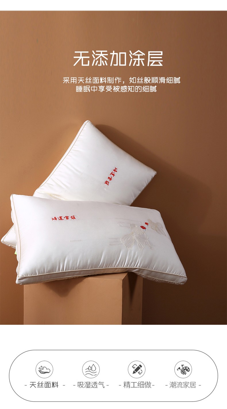 2022新款天丝刺绣仪征羽丝绒酒店枕芯护颈水洗枕头单人软枕