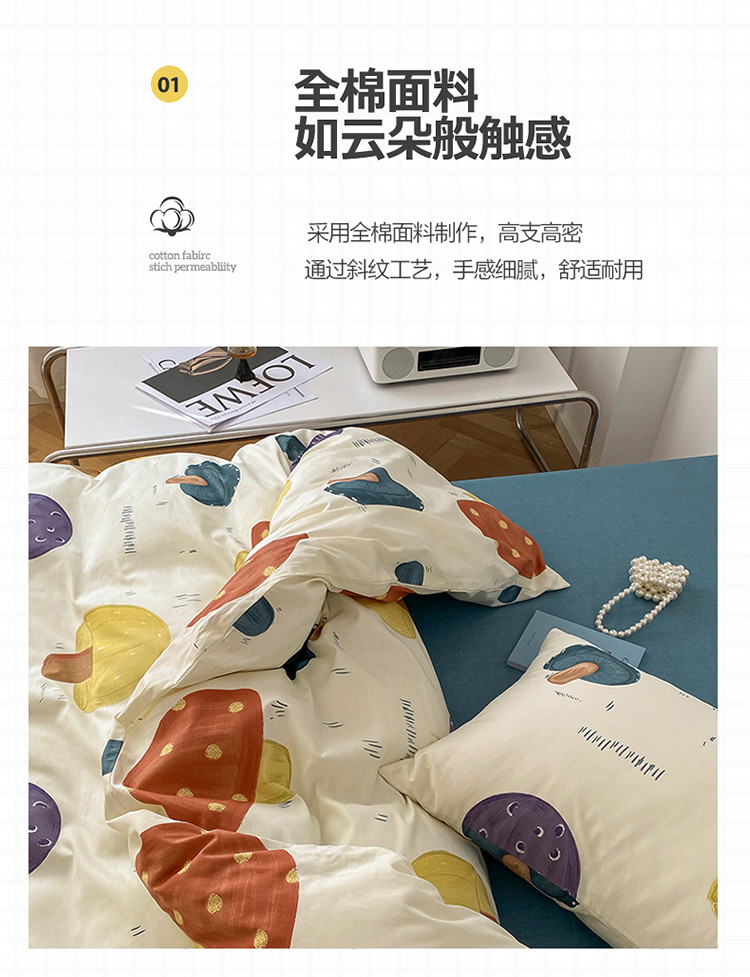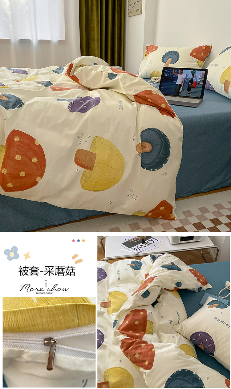 商品名称:麦伦 春季新品全棉40S斜纹印花休闲轻奢系列被套 采蘑菇