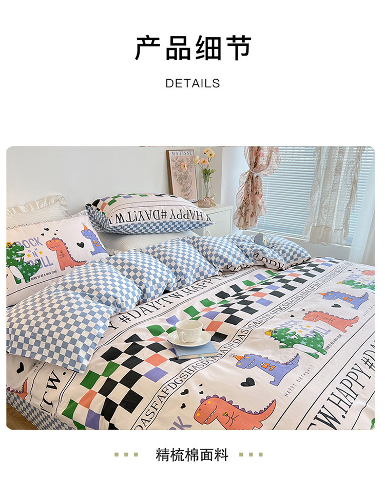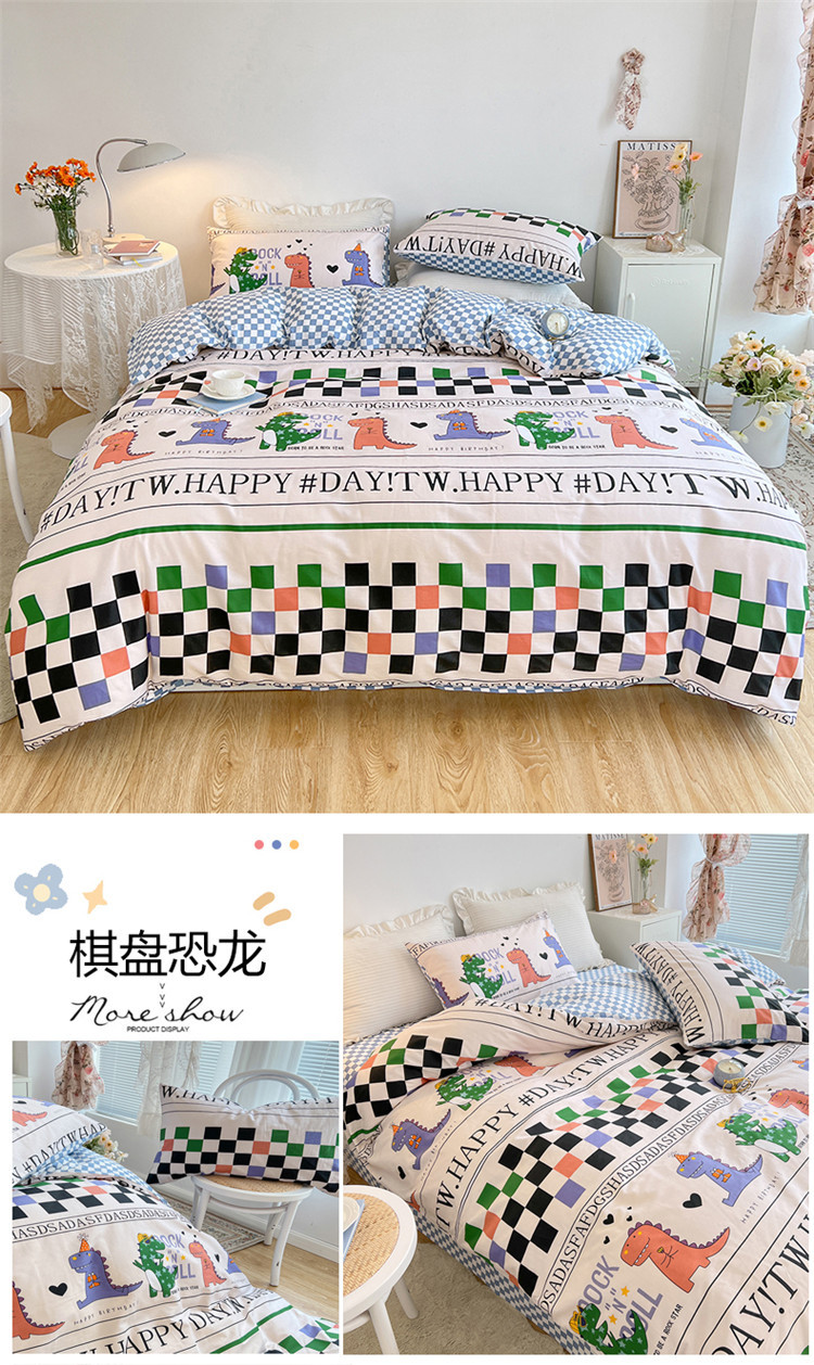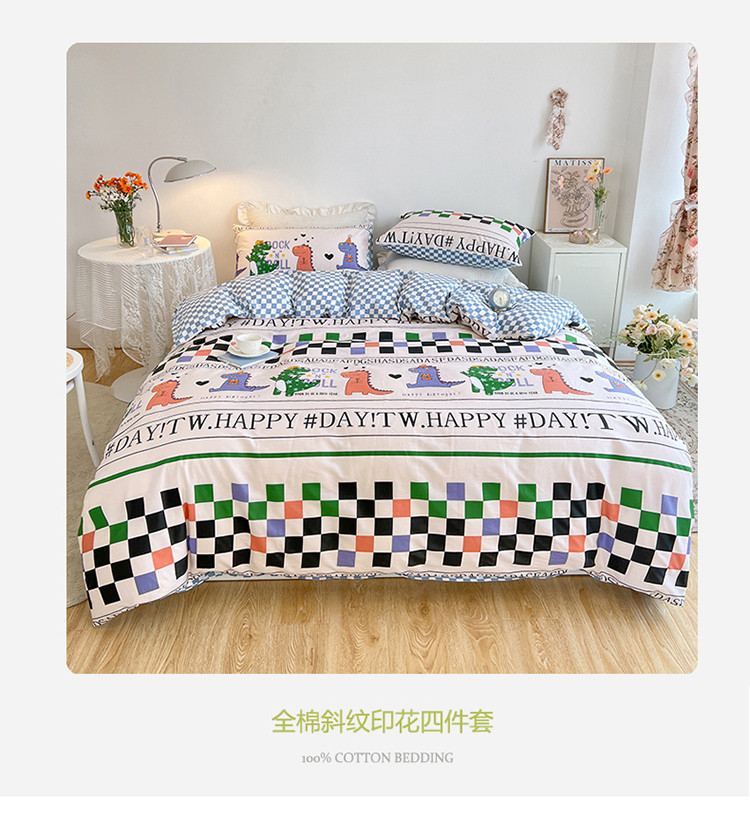 当前位置: 91家纺网 > 商品网购 > 床品套件 > 四件套 > 全棉普通四件套 > 麦伦 春季新品全棉40S斜纹印花休闲轻奢系列四件套 棋盘恐龙