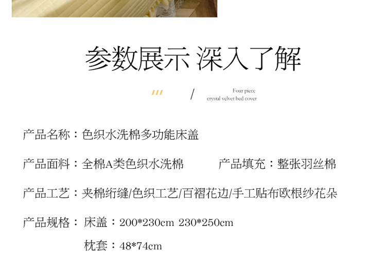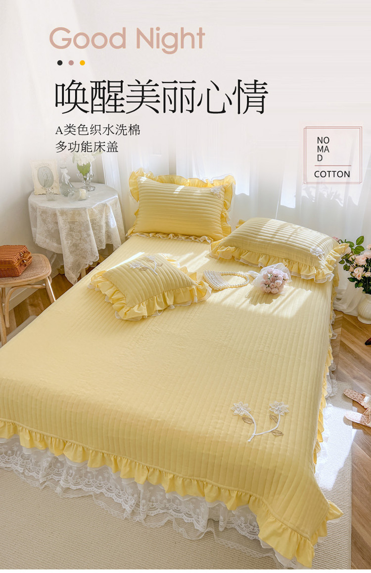 商品名称:菊上家纺 2022新款手工花色织水洗棉多功能床盖 黄