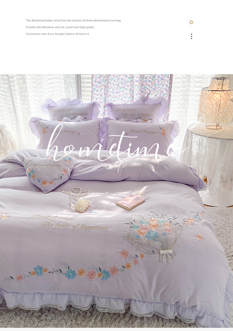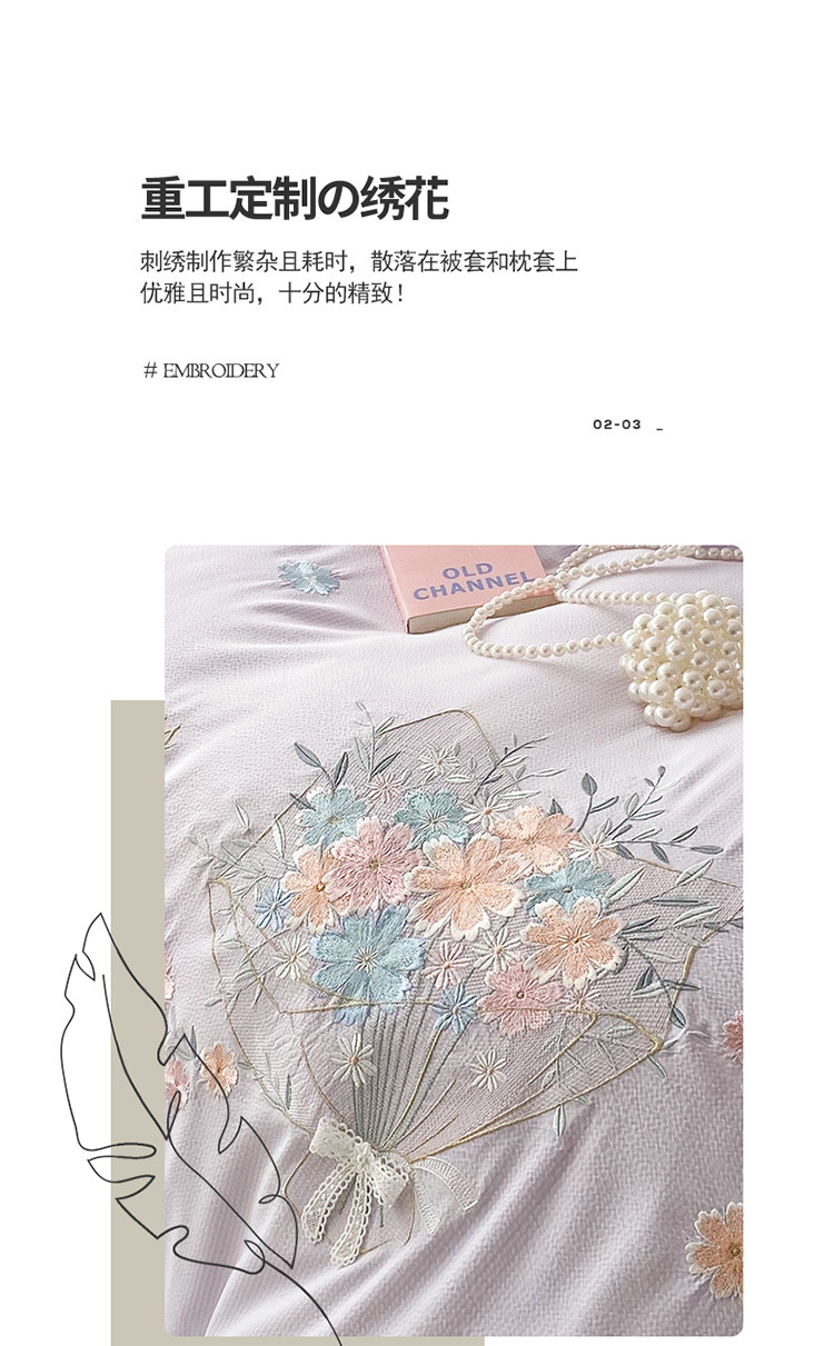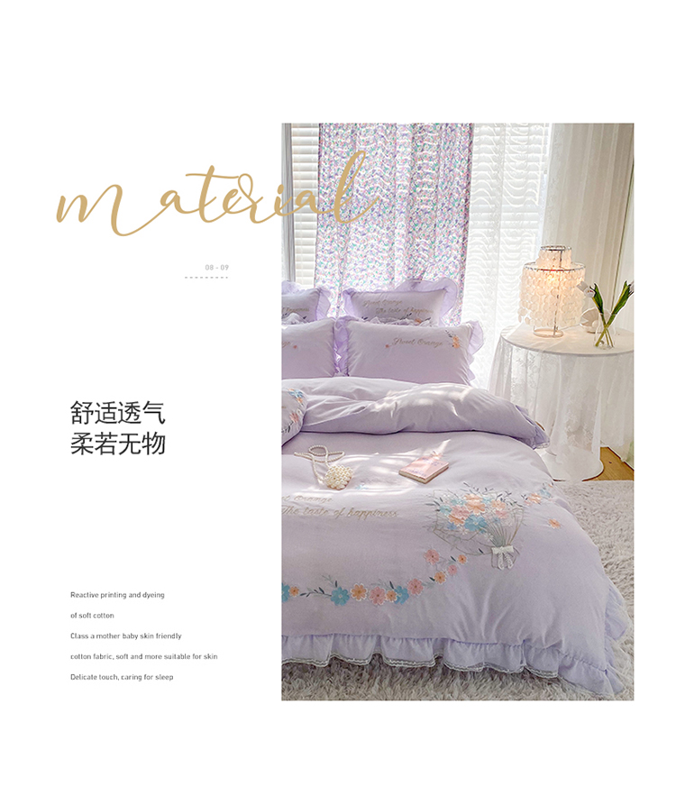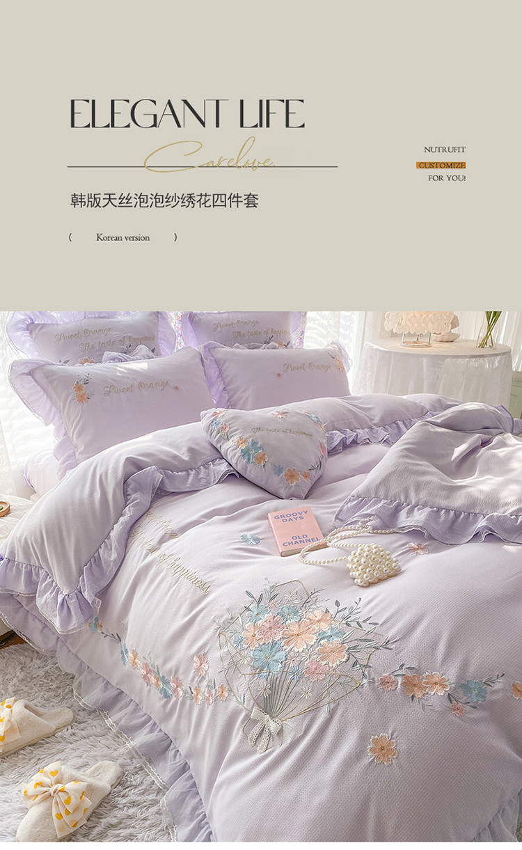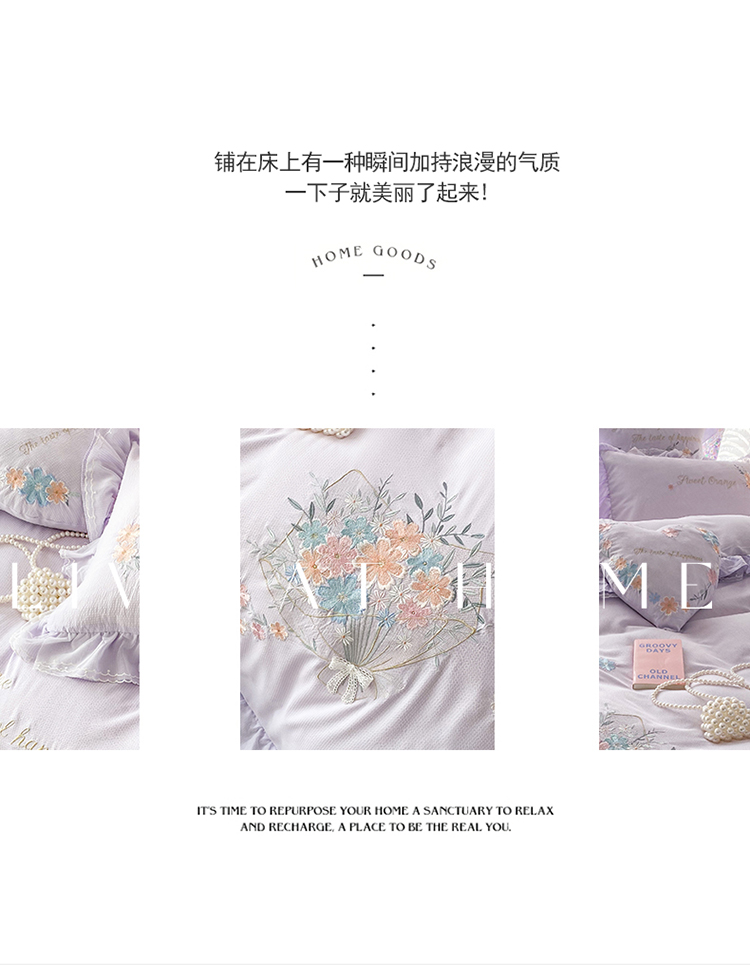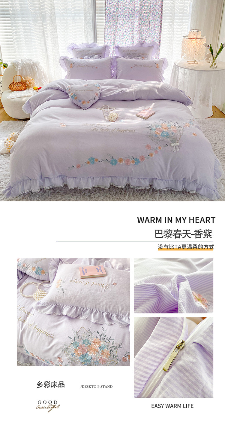 艾晶美家纺 2022新款莱赛尔天丝泡泡纱绣花四件套 巴黎春天-香紫