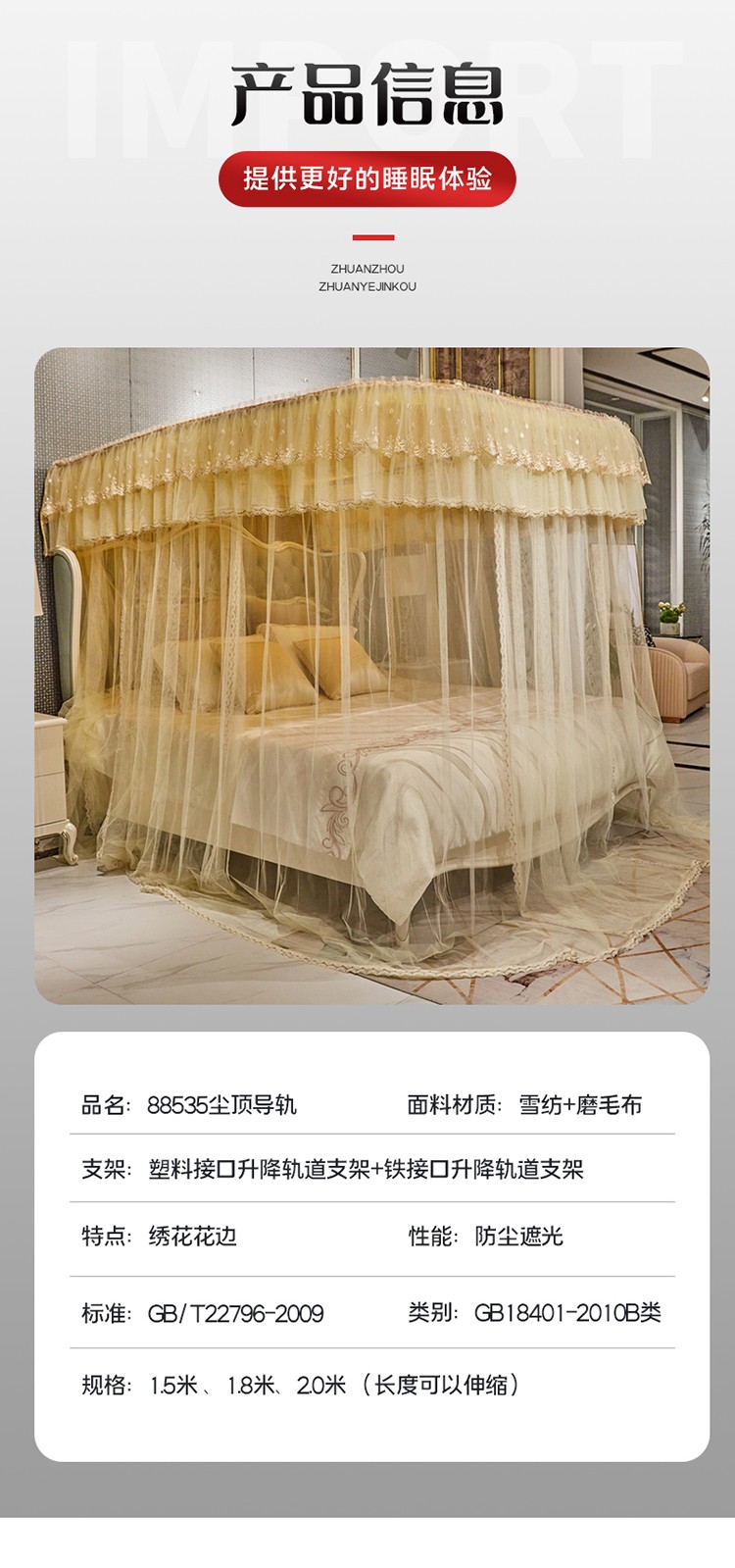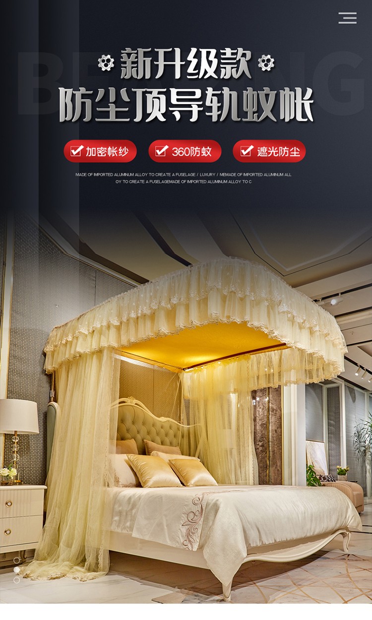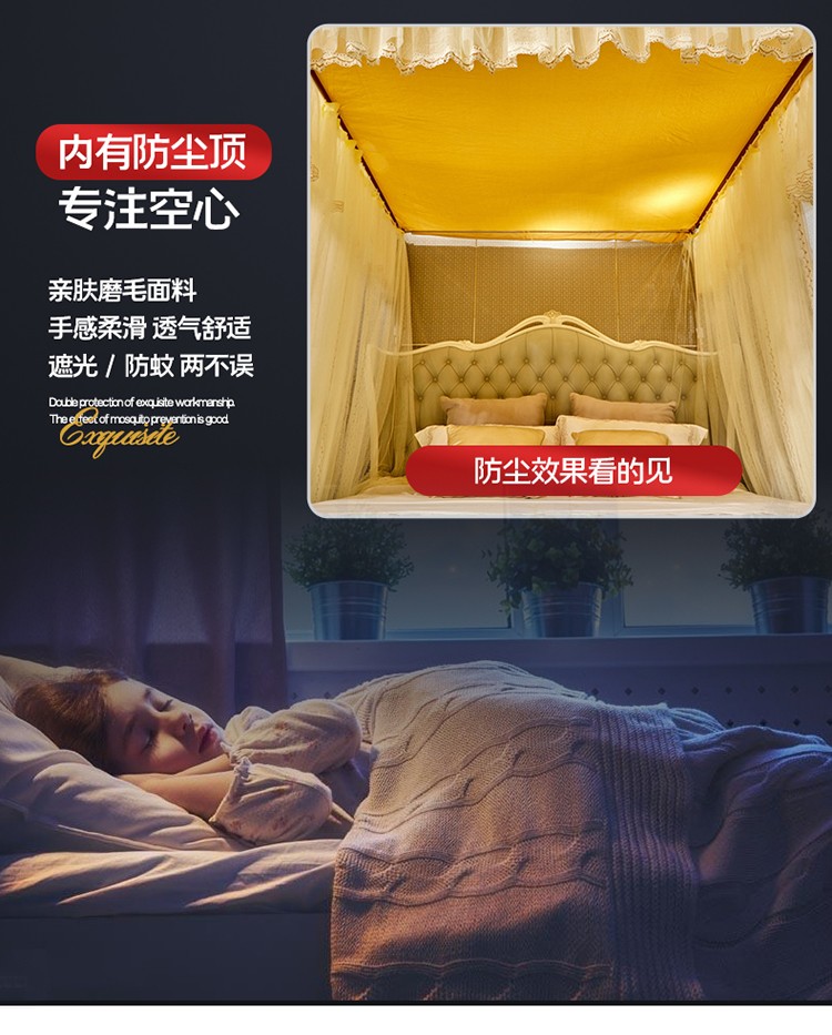 当前位置: 91家纺网 > 商品网购 > 床上用品 > 蚊帐 > 导轨蚊帐 > 夏彩新款防尘遮光顶加密加厚防蚊轨道睡帐88535米黄