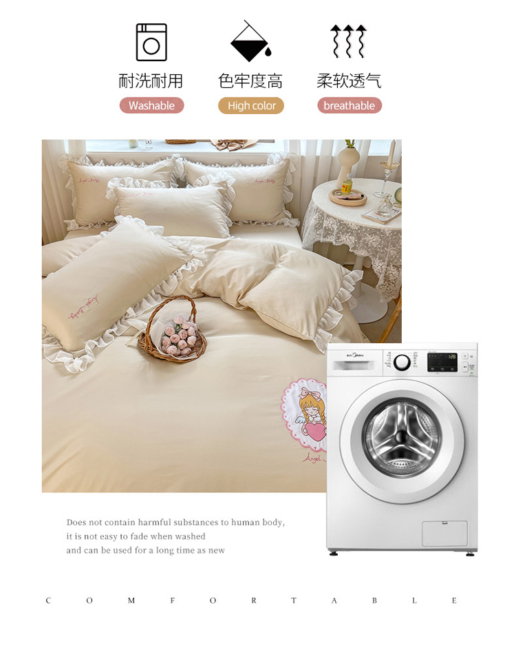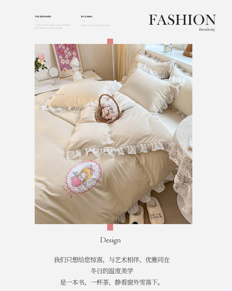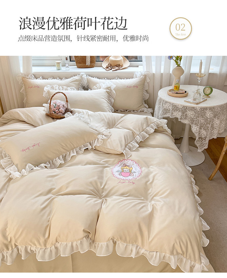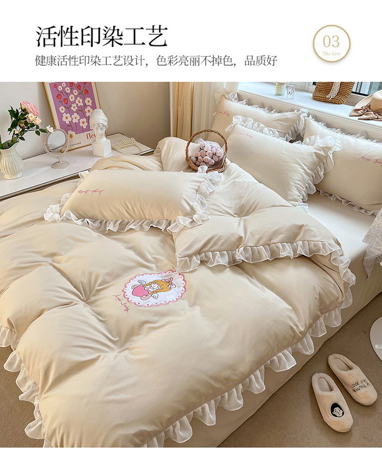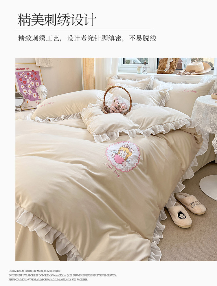 当前位置: 91家纺网 > 商品网购 > 床品套件 > 四件套 > 水洗真丝四件套 > 沐慕 22新款水洗真丝刺绣花边四件套 天使女孩-玉白