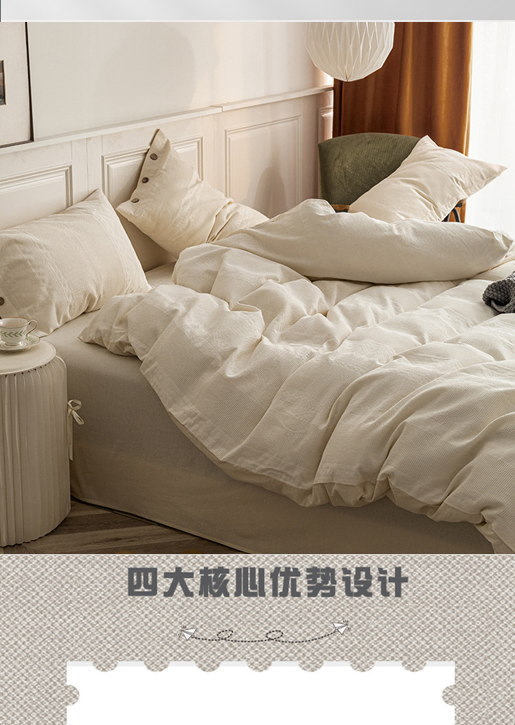总-简宜家居 2022新款纯棉提花水洗棉纽扣款四件套