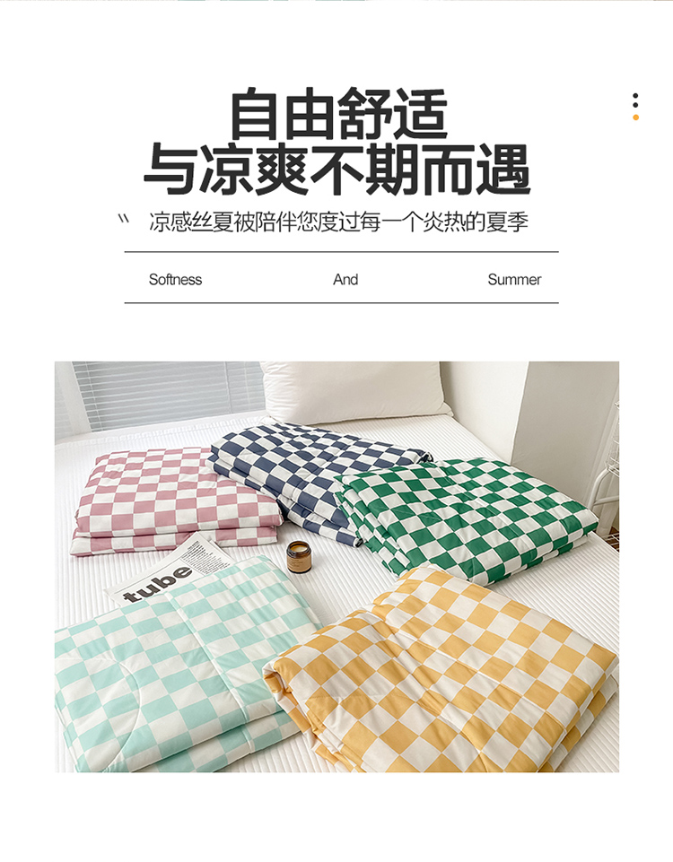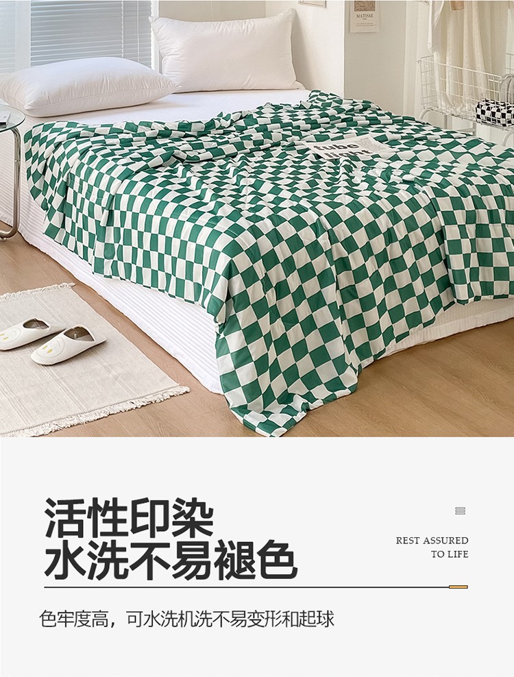 商品名称:木堇 2022新款凉感丝夏被棋盘格系列 绿白格