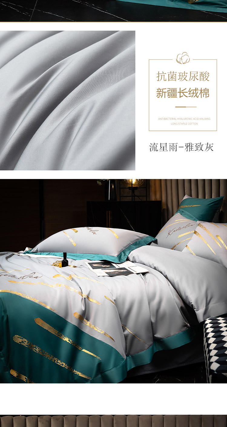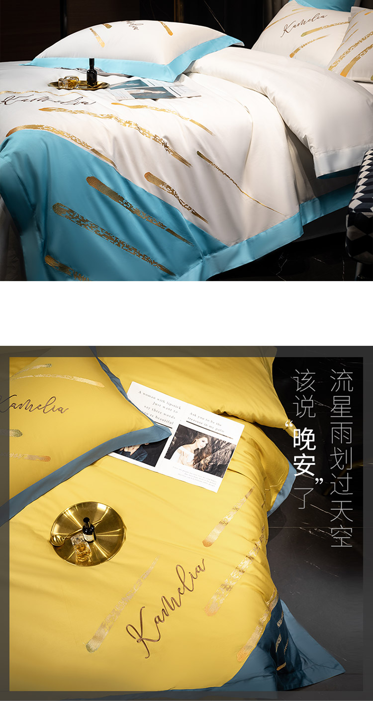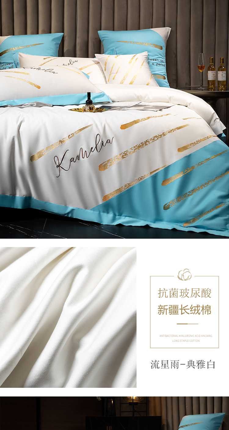 商品名称:铭动 2023新款流星雨玻尿酸抗菌长绒棉四件套 流星雨-路易黄