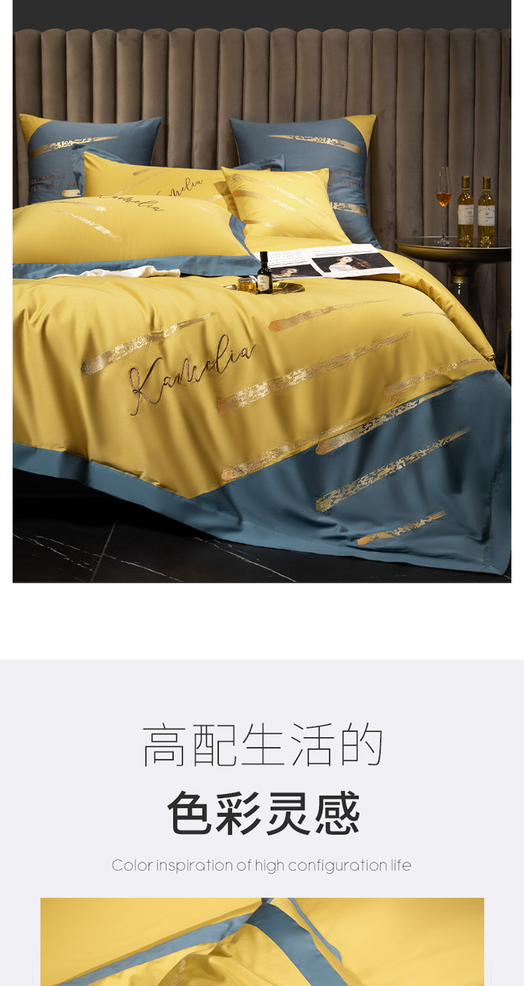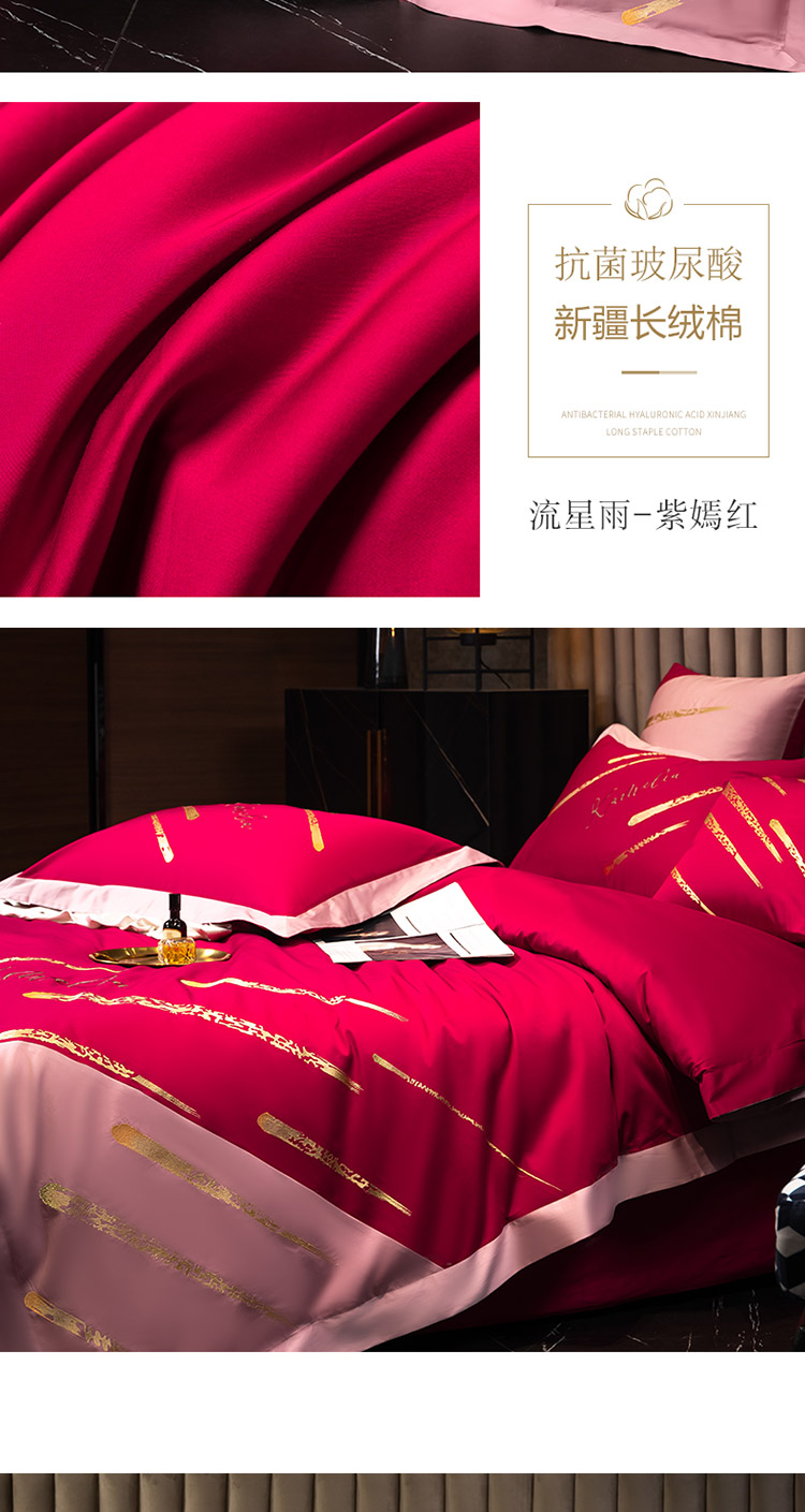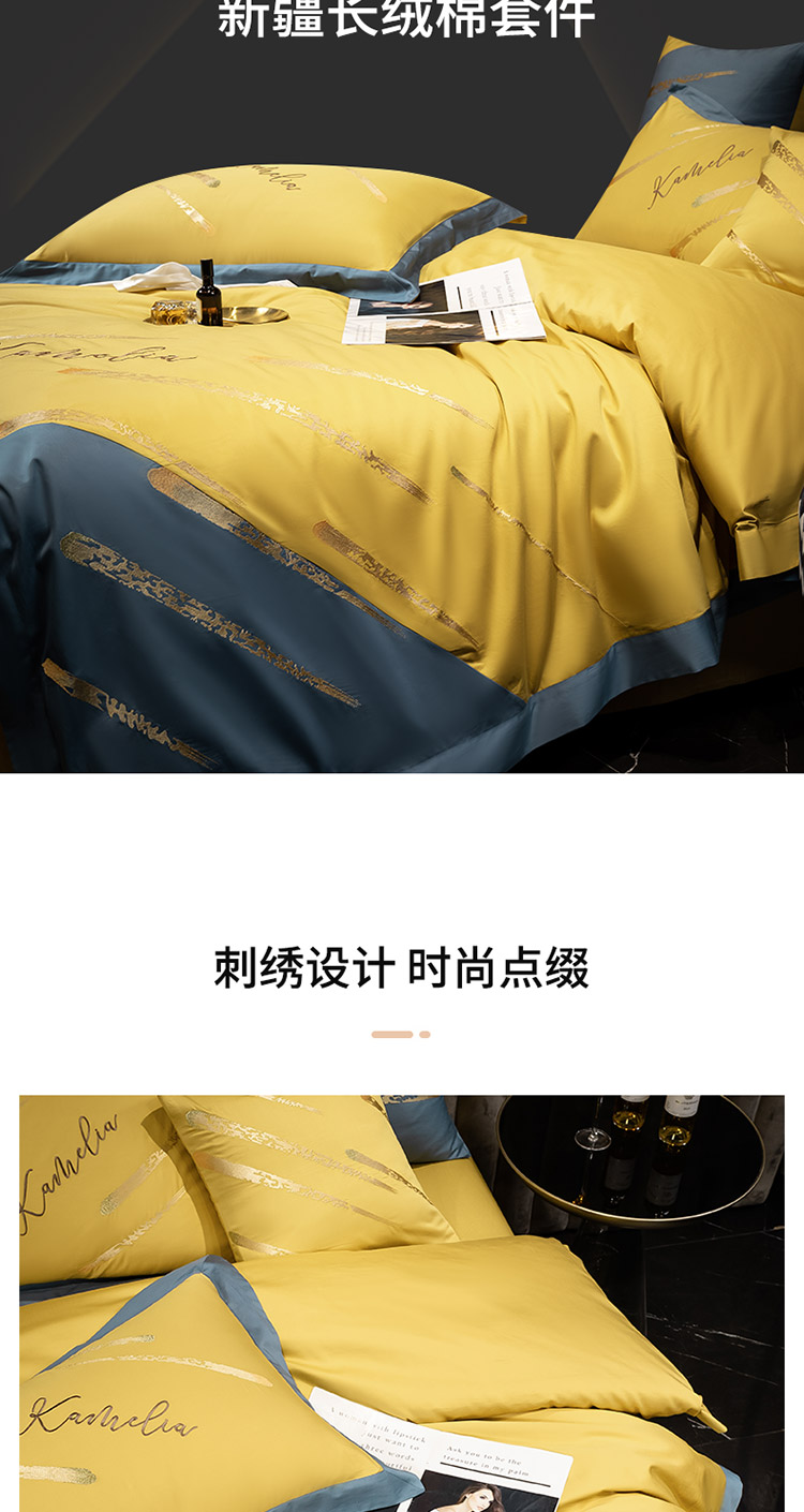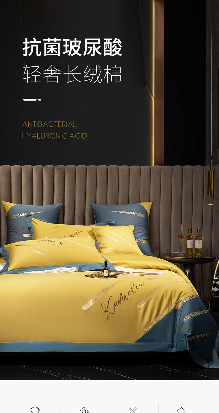 商品名称:铭动 2023新款流星雨玻尿酸抗菌长绒棉四件套 流星雨-路易黄