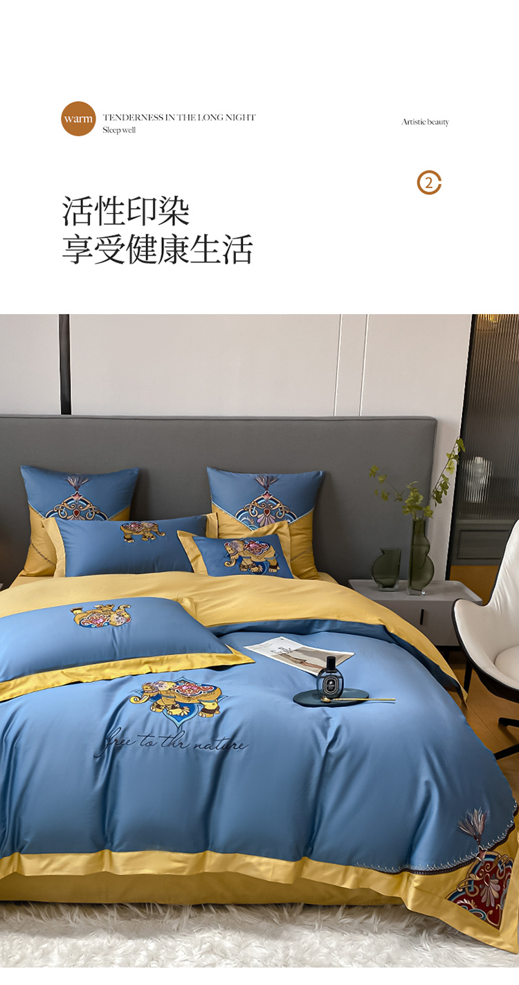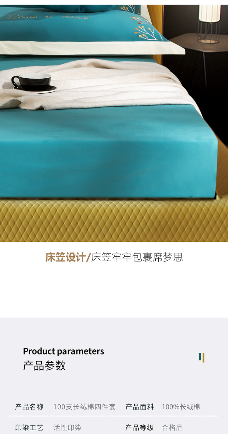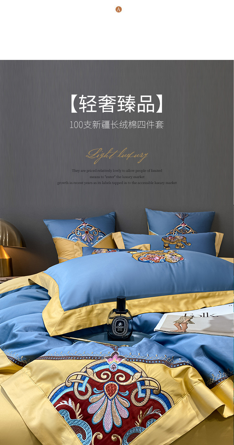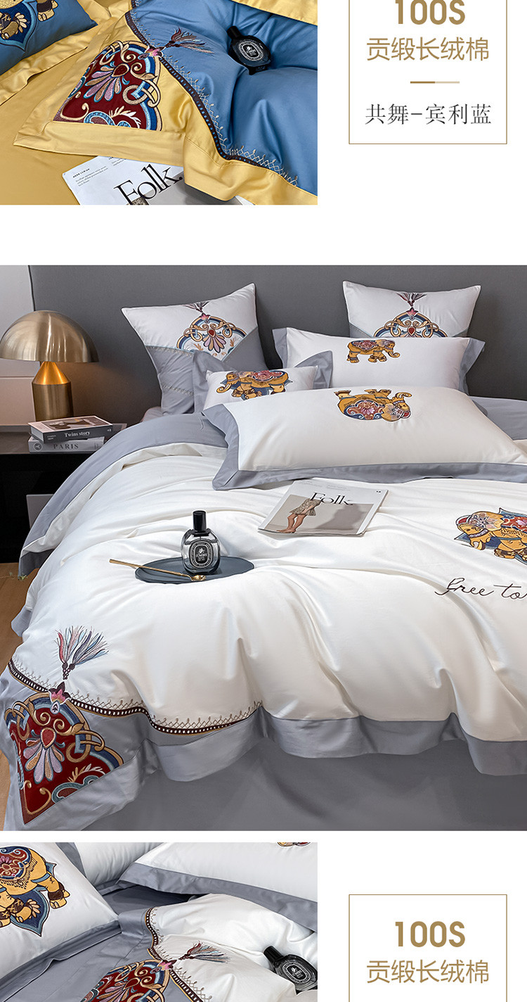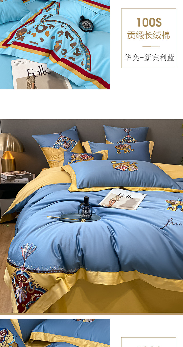 商品名称:铭动 2023新款100支长绒棉四件套 共舞-宾利蓝