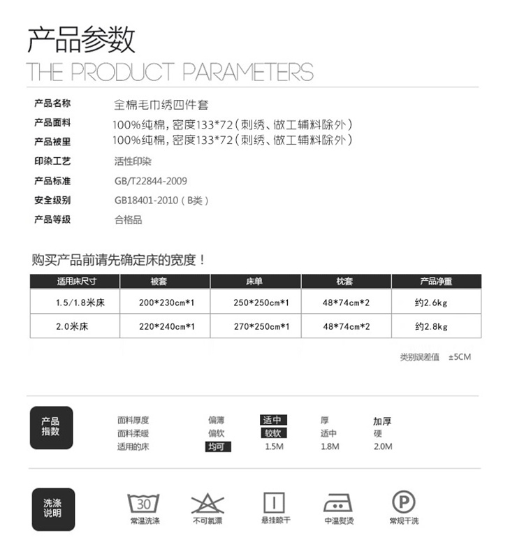 被套200*230cm*1,床单250*250cm*1,枕套48*75cm*2床笠款需提前预订,加10元一套。