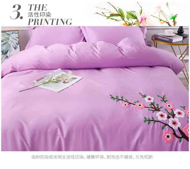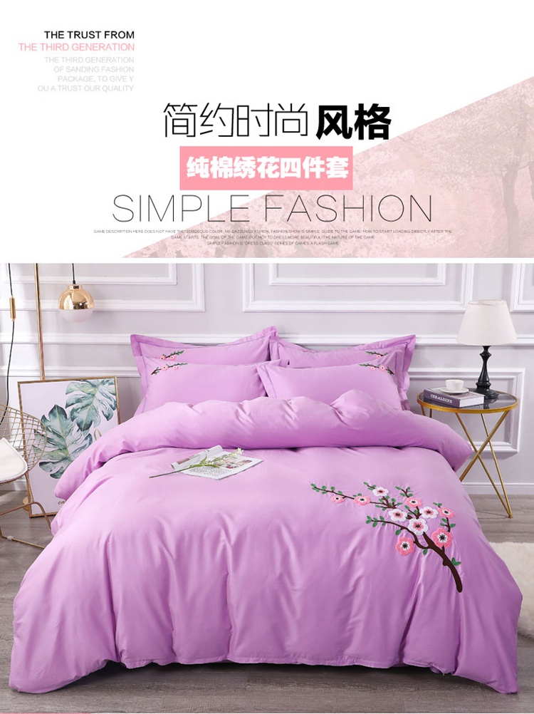 2022晶缦全棉13372纯色毛巾绣绣花四件套 桃花朵朵紫色