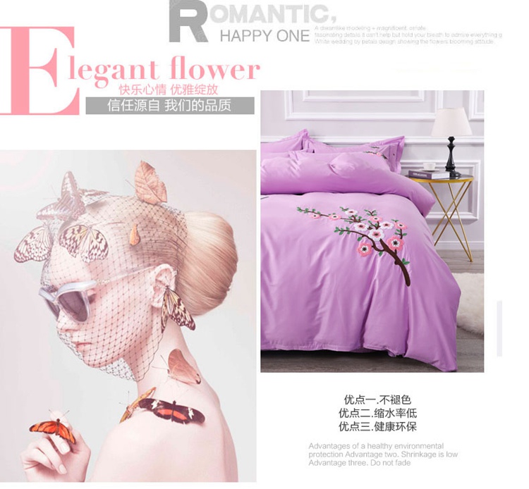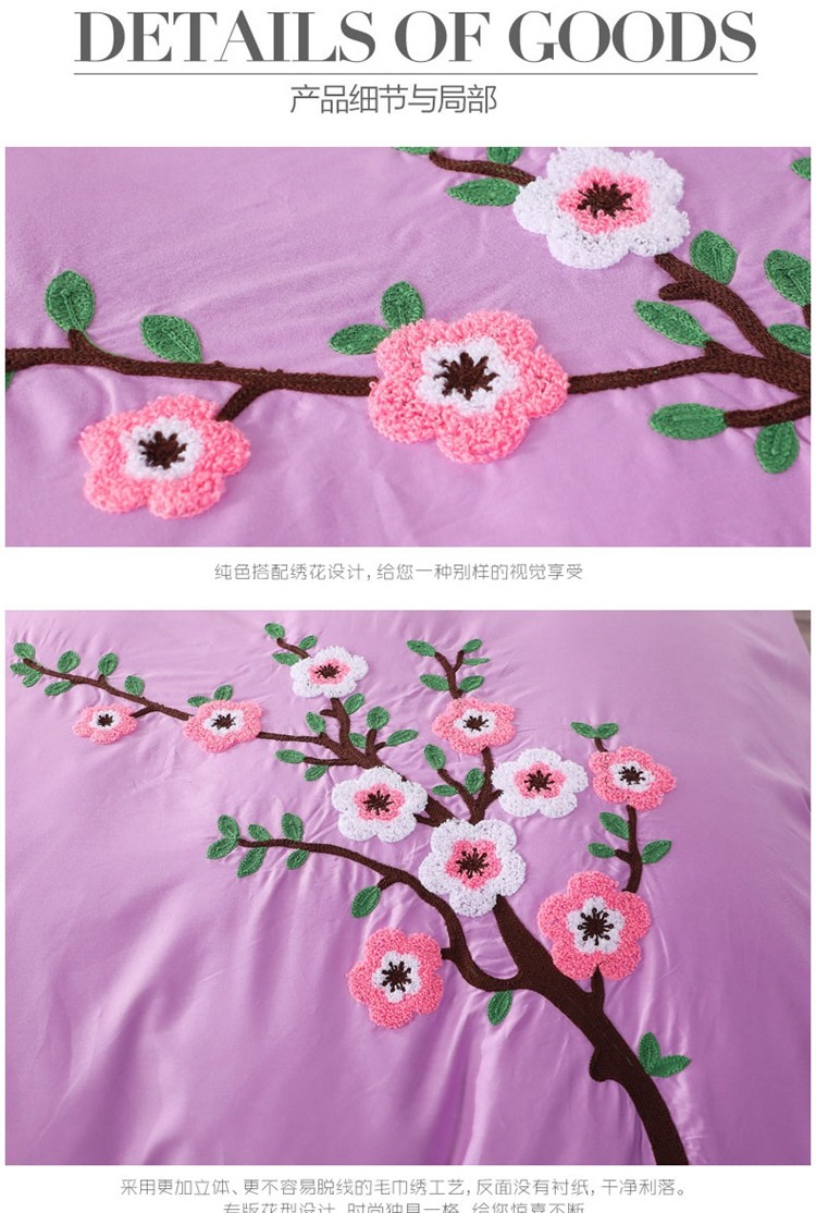 商品名称:2022晶缦全棉13372纯色毛巾绣绣花四件套 桃花朵朵紫色