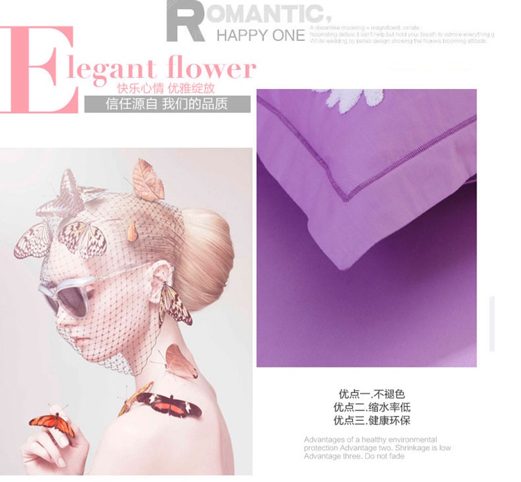 2022晶缦全棉13372纯色毛巾绣绣花四件套 夏花绽放浅紫