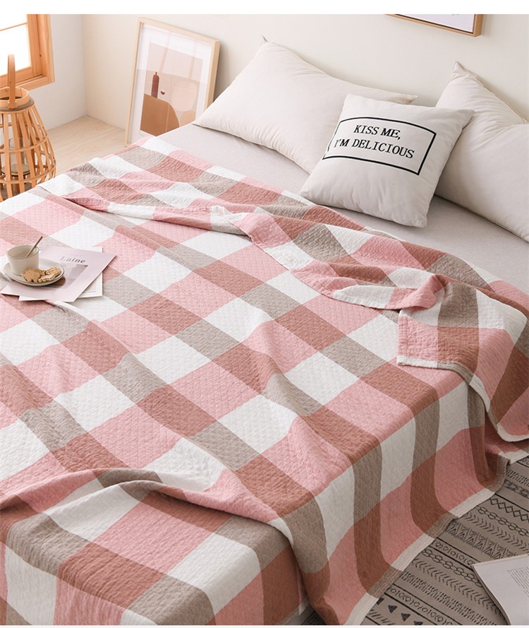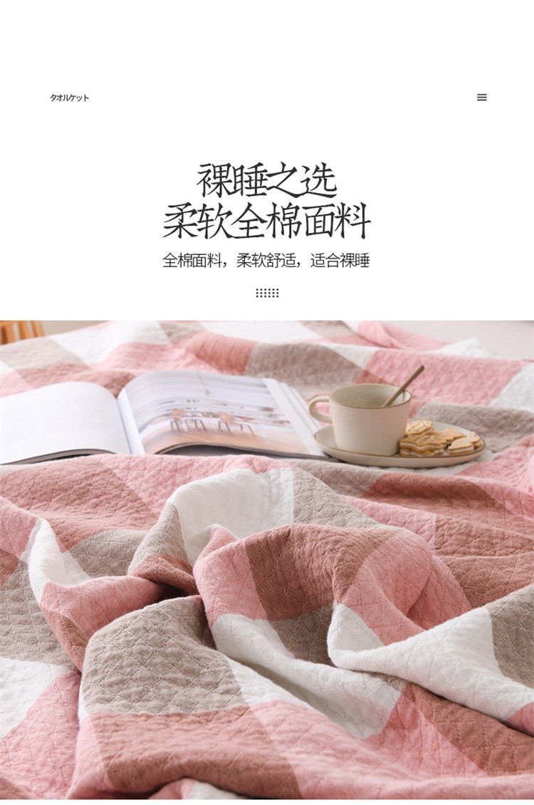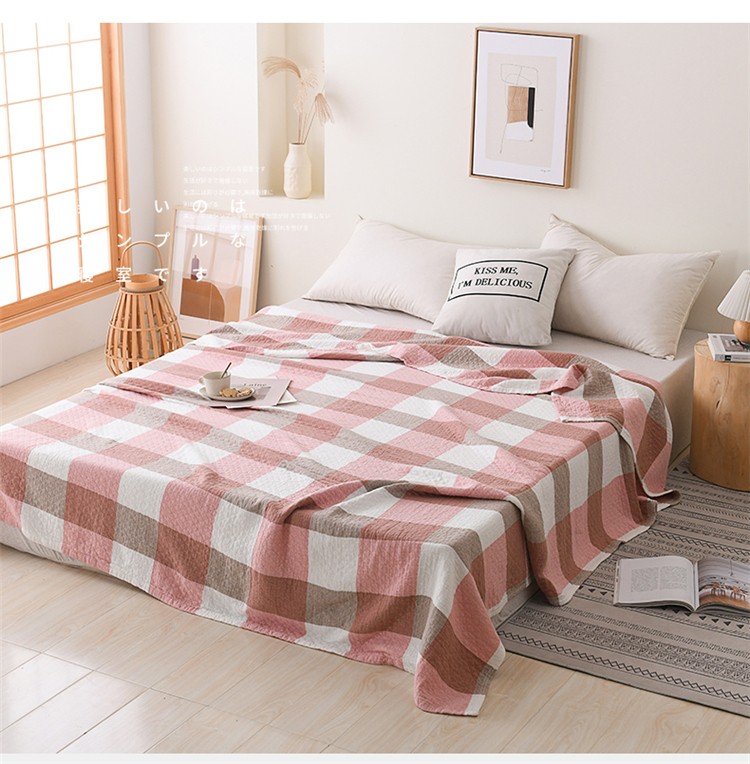 雯雨 2022新款无印风纱布毛巾被夏被直播 复古大格粉