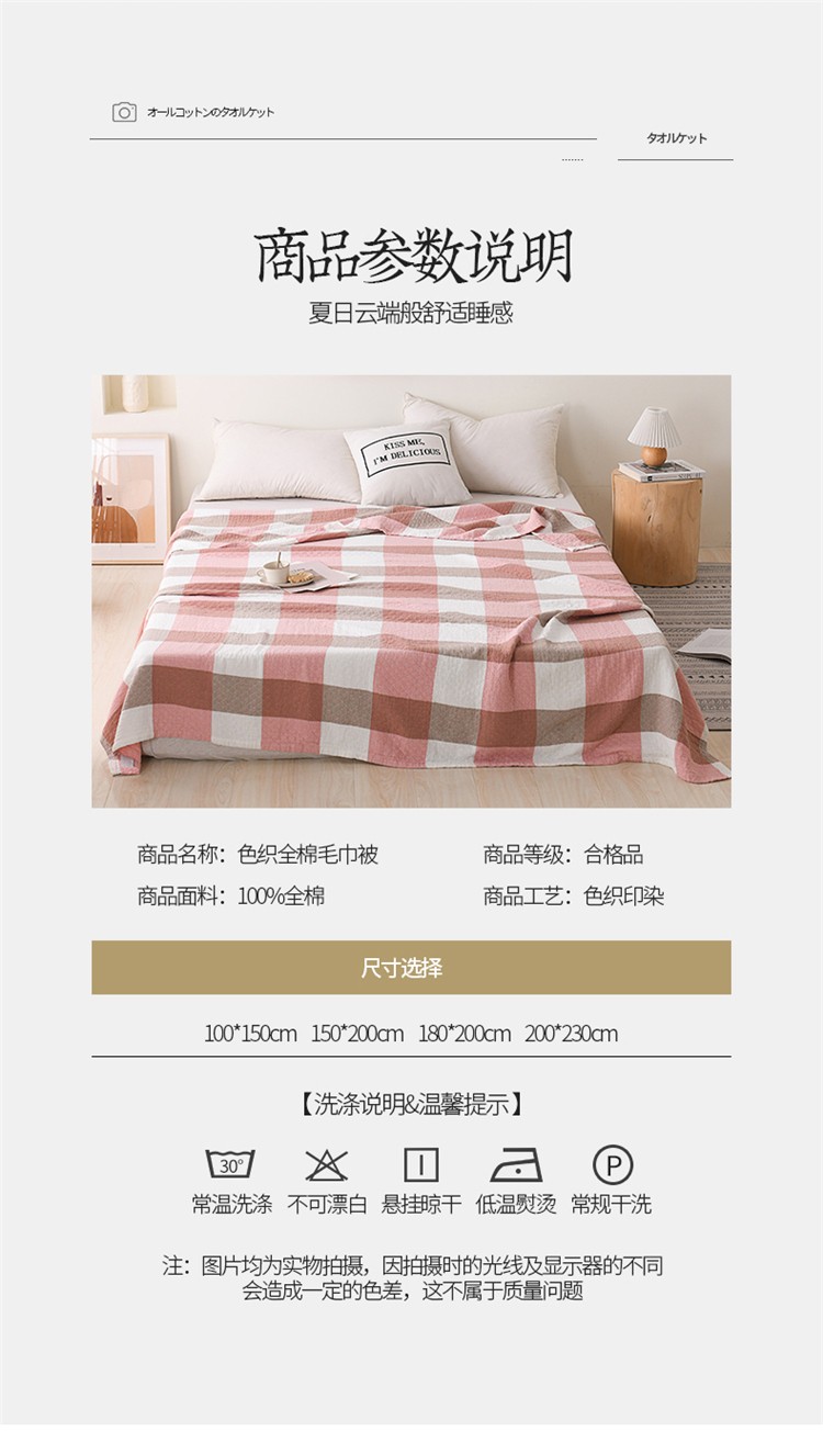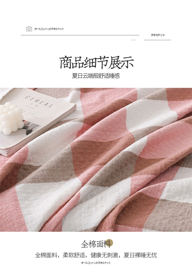 商品名称:雯雨 2022新款无印风纱布毛巾被夏被直播 复古大格粉
