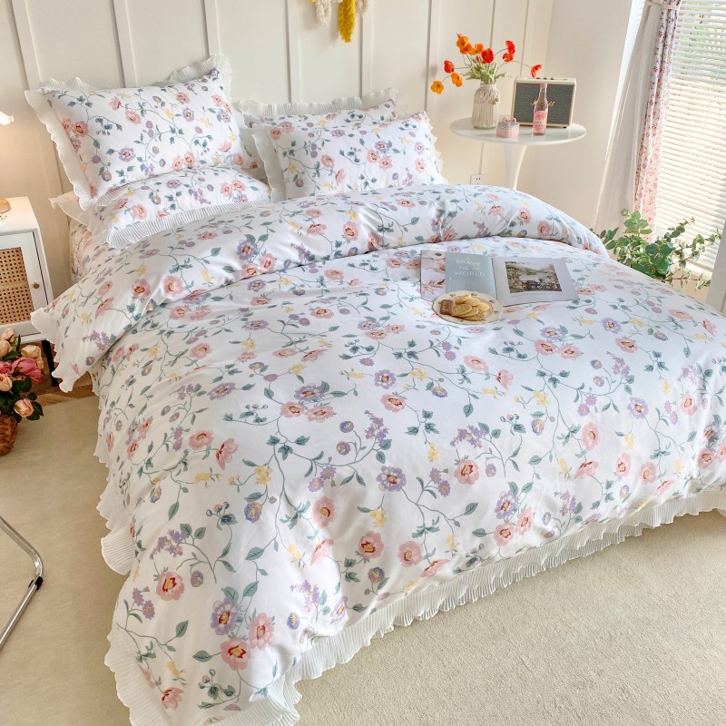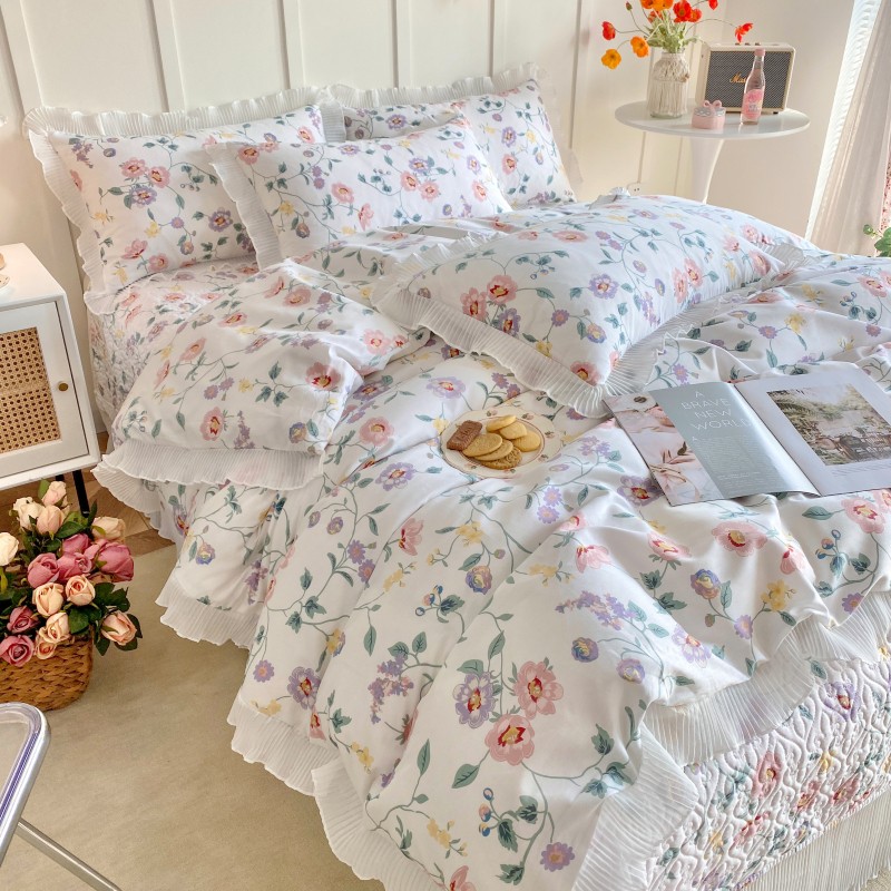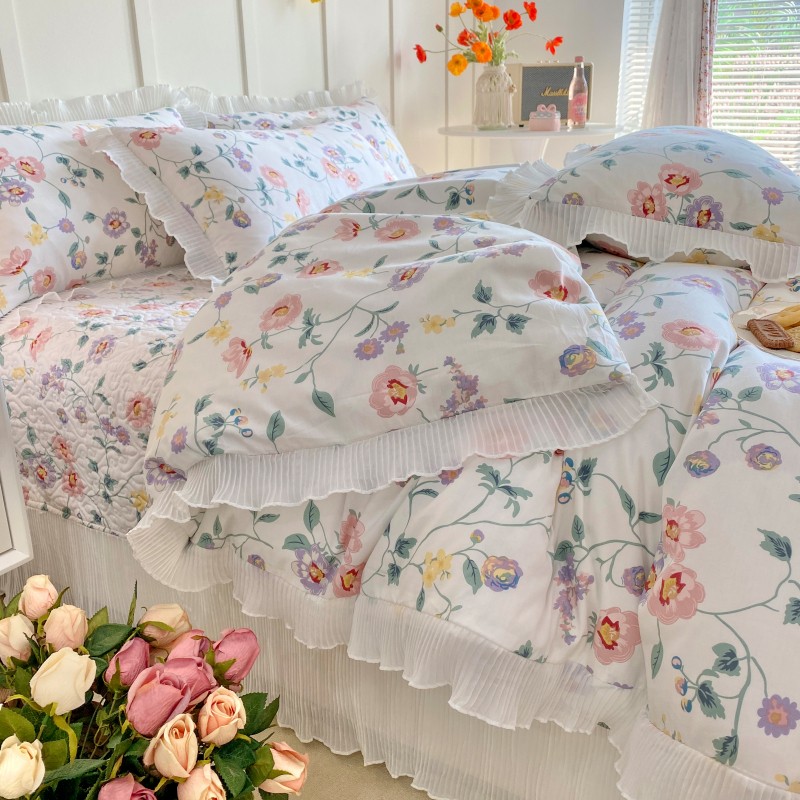 星尚 2022新款全棉夹棉床盖仙女系四件套 花枝招展