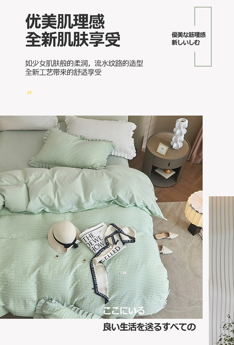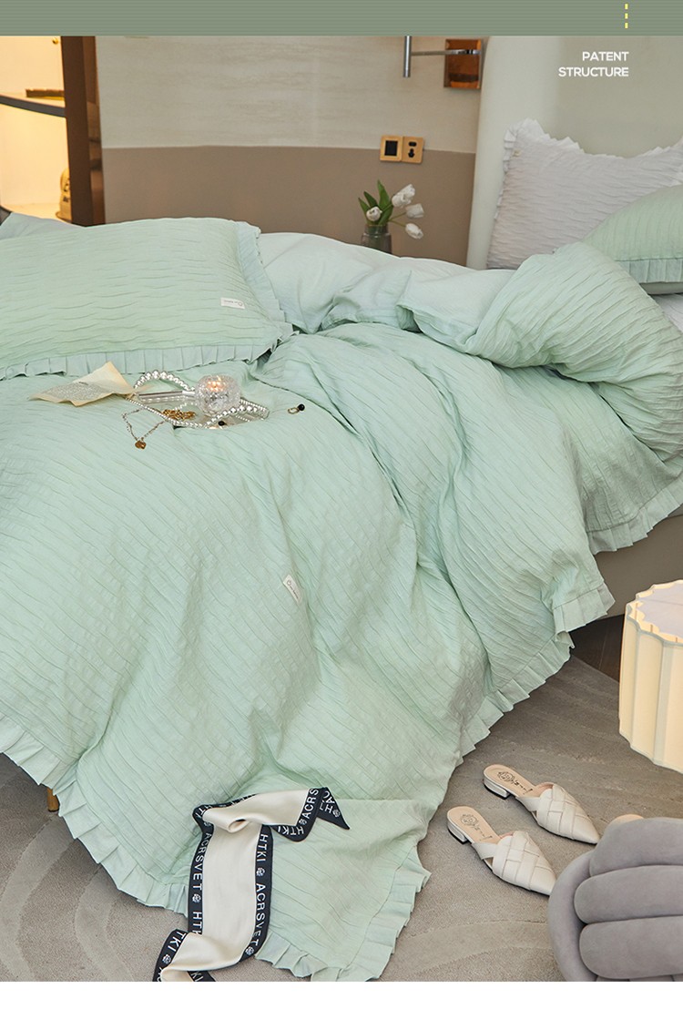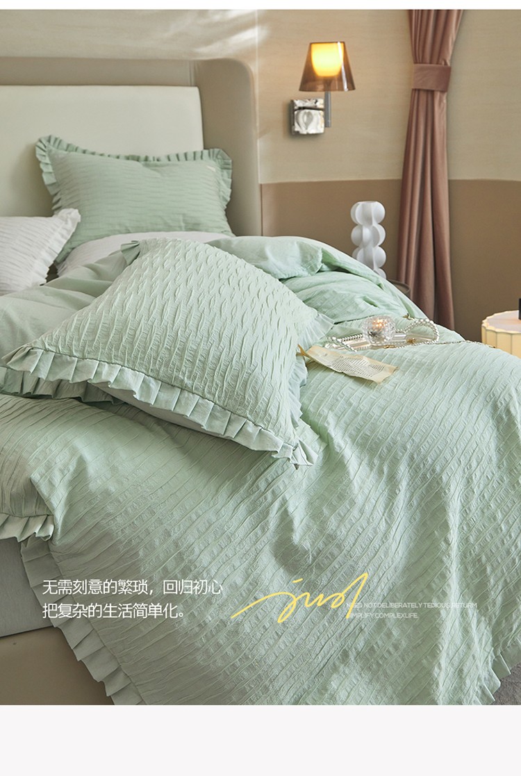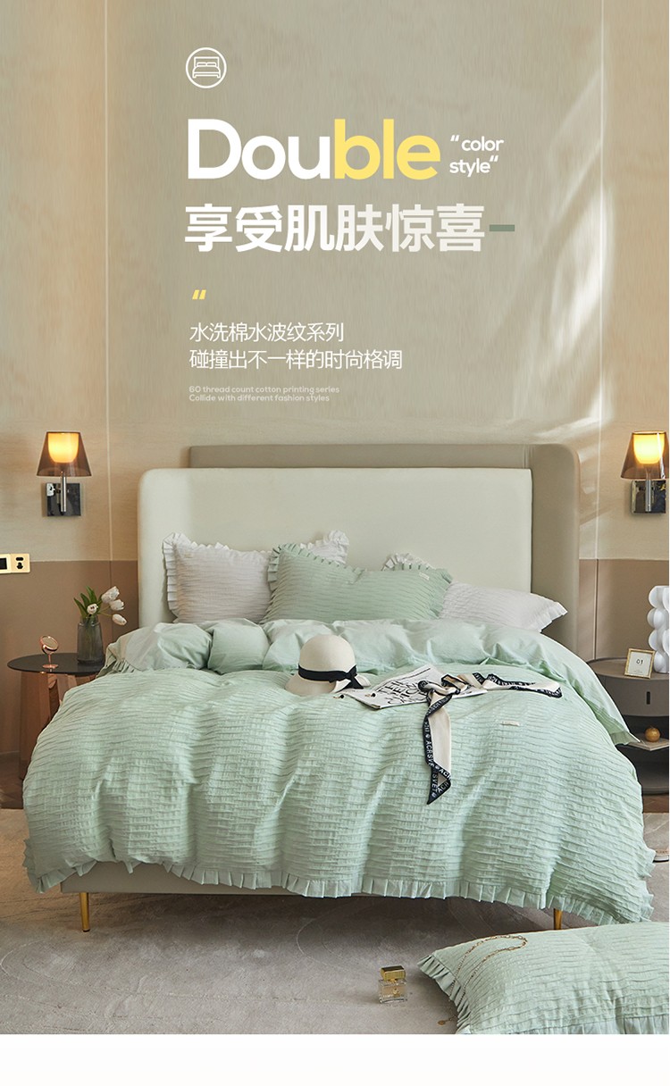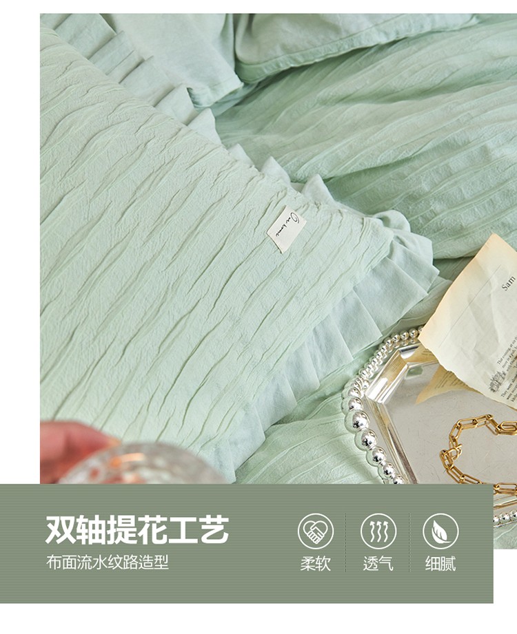 商品名称:2023名品优仓直播爆款水洗棉四件套水波纹系列 蓦然-清馨绿