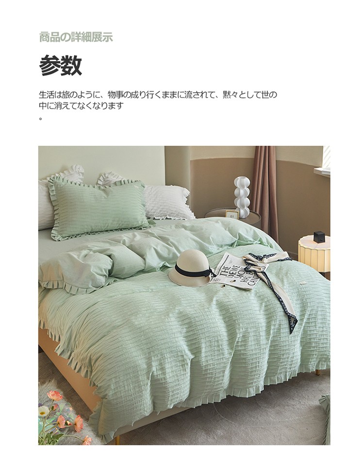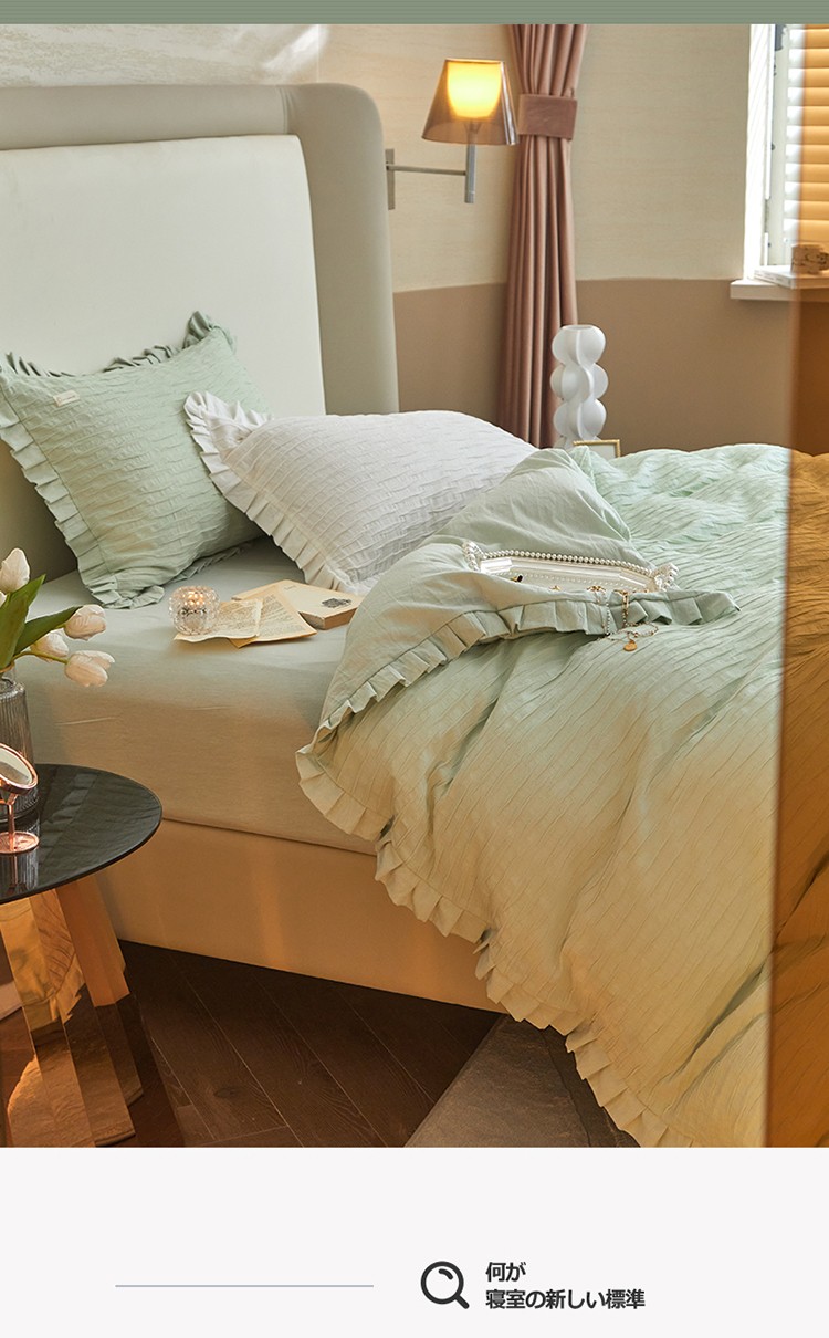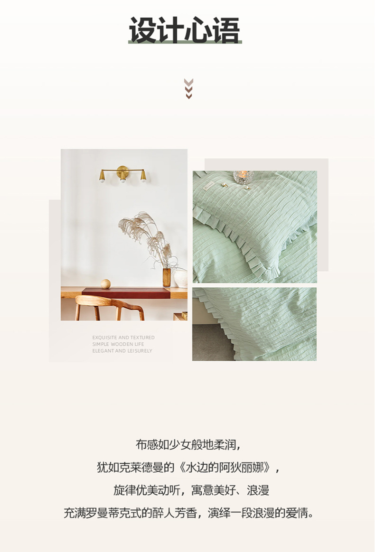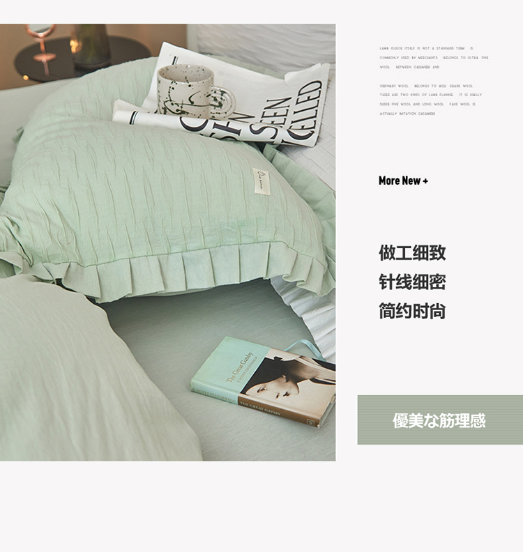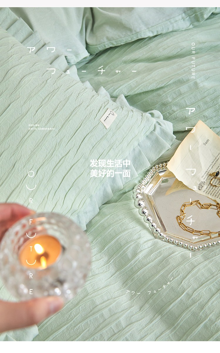 商品名称:2023名品优仓直播爆款水洗棉四件套水波纹系列 蓦然-清馨绿