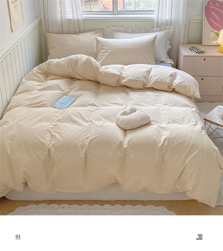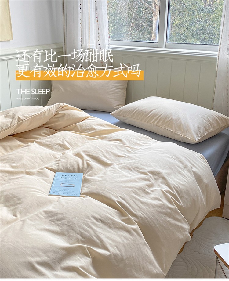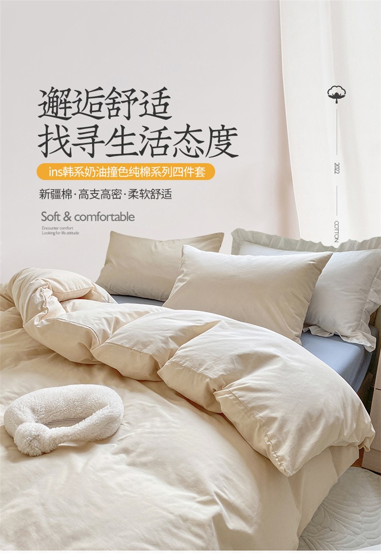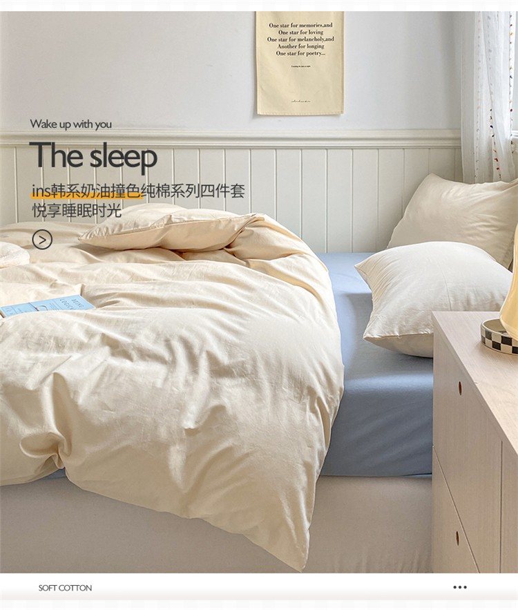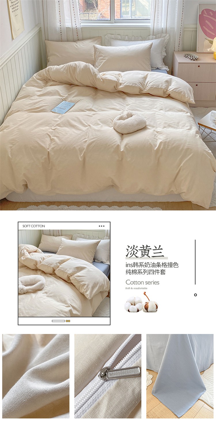 桃子家居 2022韩系ins奶油条格撞色纯棉四件套淡黄兰