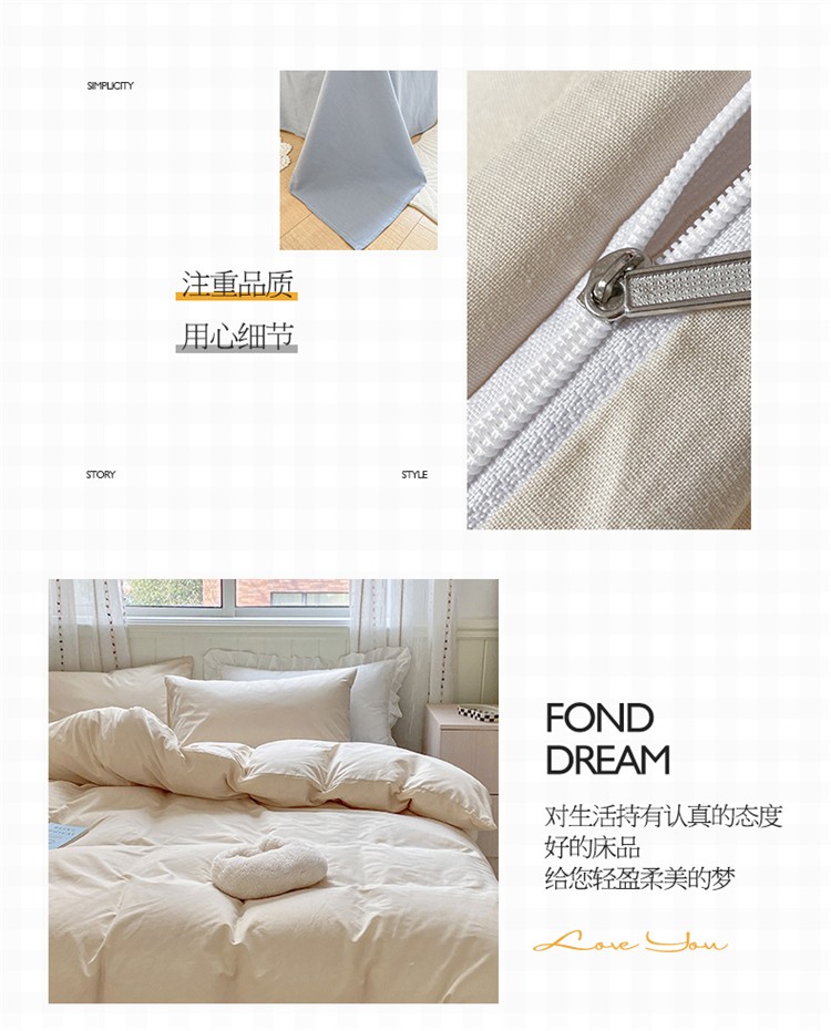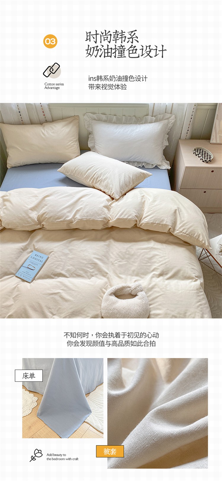 商品名称:桃子家居 2022韩系ins奶油条格撞色纯棉四件套淡黄兰