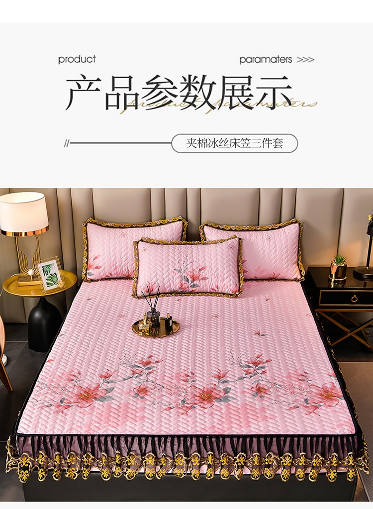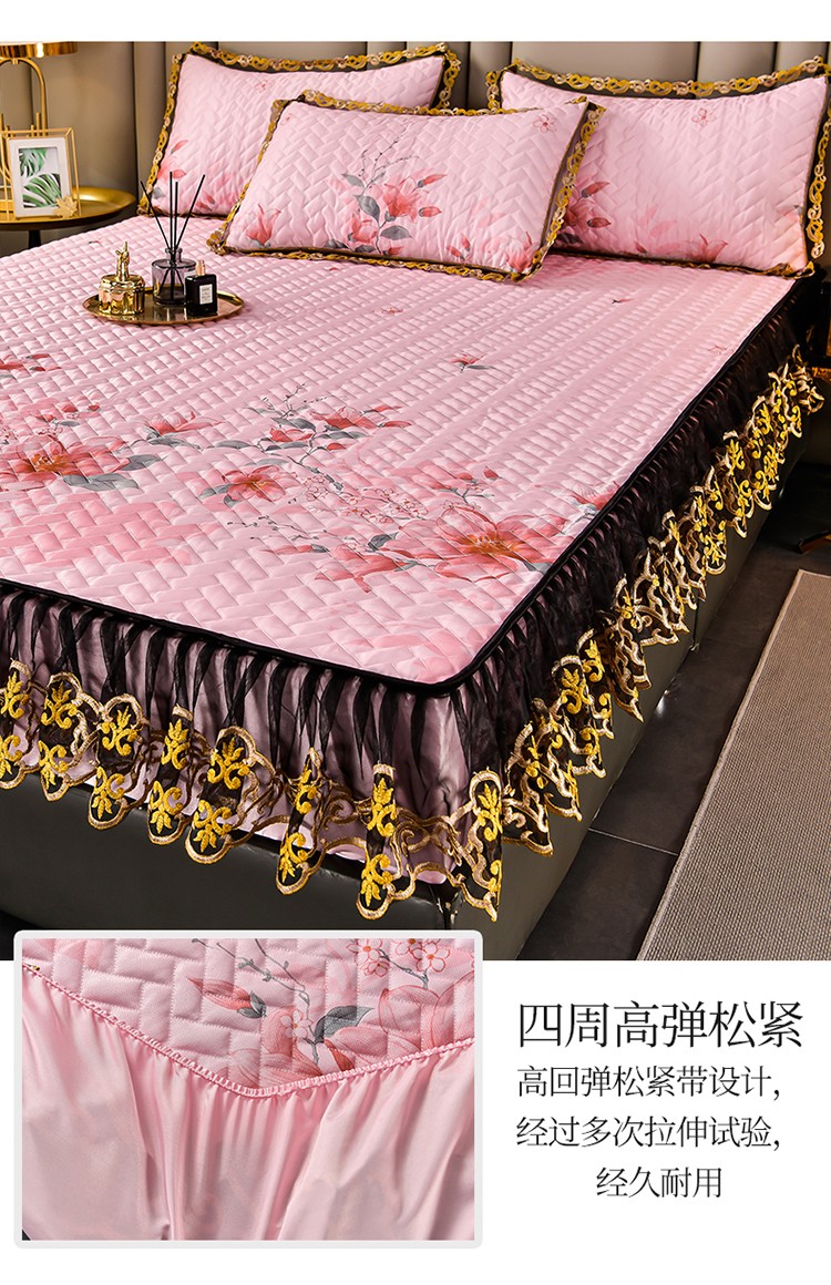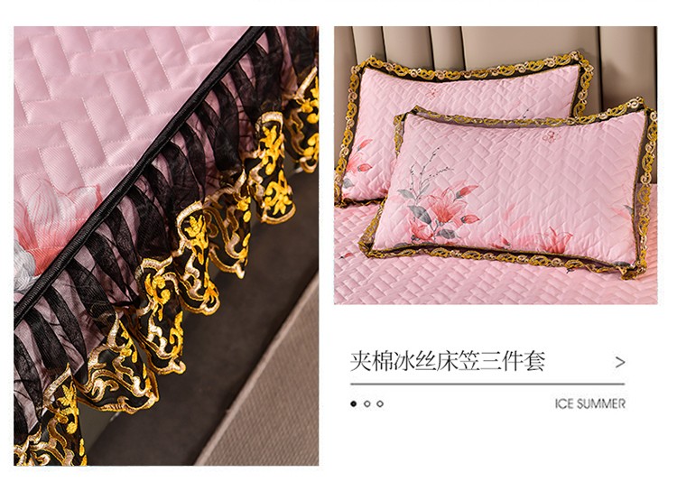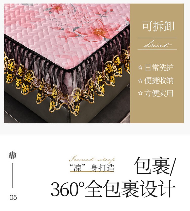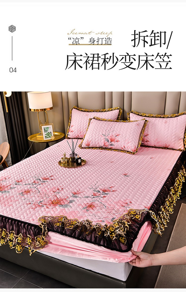 商品名称:迪梦思 2022新款蕾丝花边可拆卸床笠冰丝凉席三件套 水榭花香