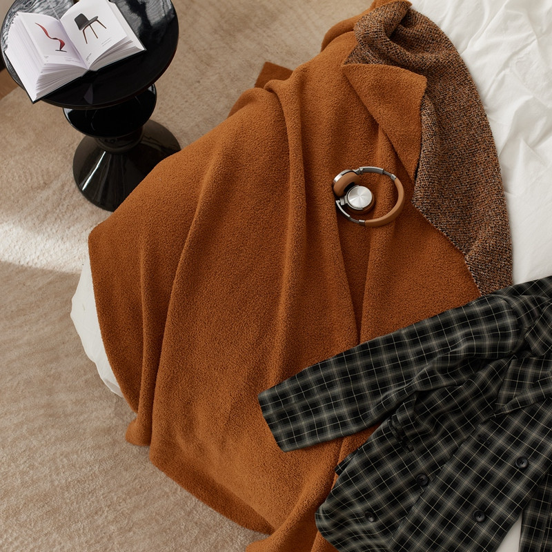 安莱 设计师太阳花A类半边绒针织毯子沙发办公室午睡毯秋冬 苍苍