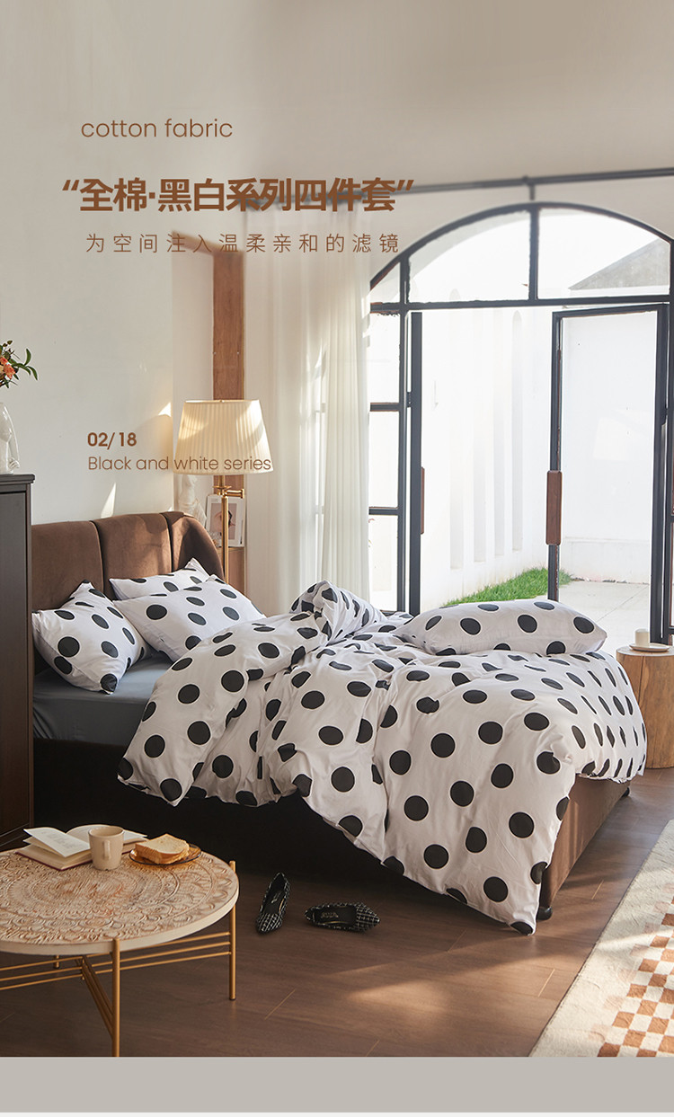 当前位置: 91家纺网 > 商品网购 > 床品套件 > 四件套 > 艾佳2025全棉13372黑白灰经典系列四件套-场景2 洋气圈圈灰
