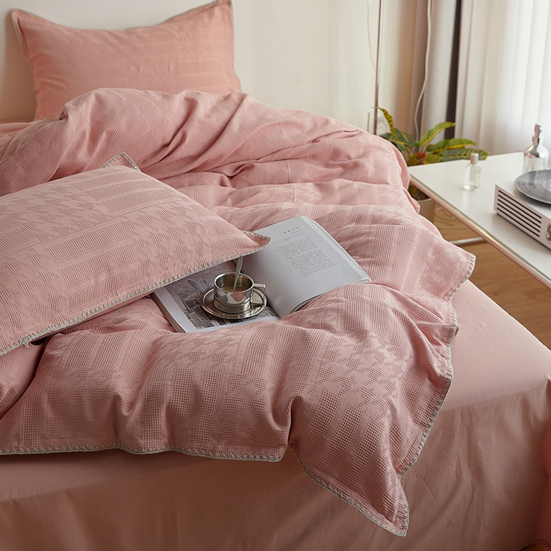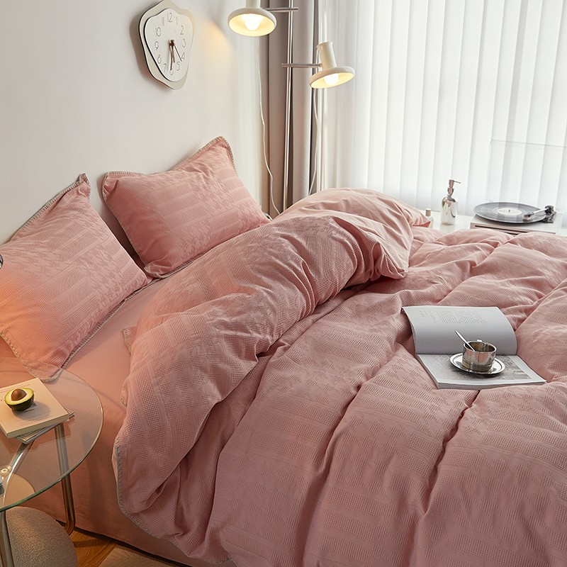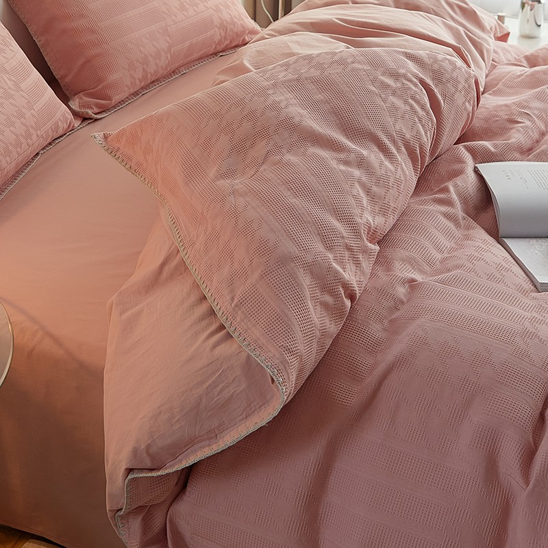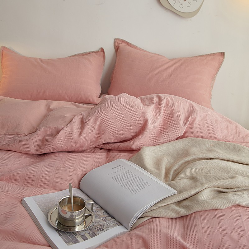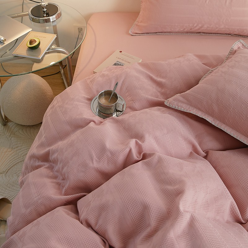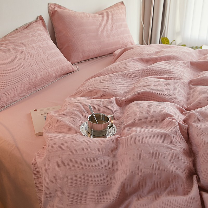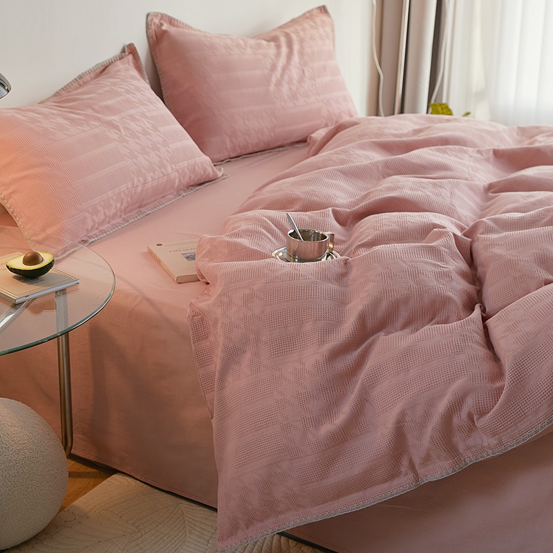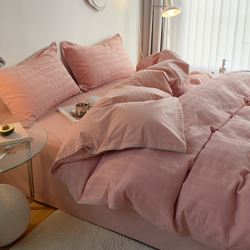 商品名称:简家居 2022新款千鸟华夫格四件套 皮粉