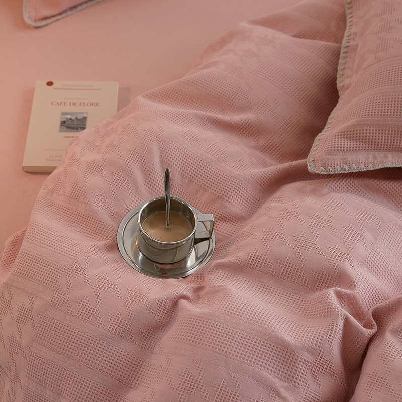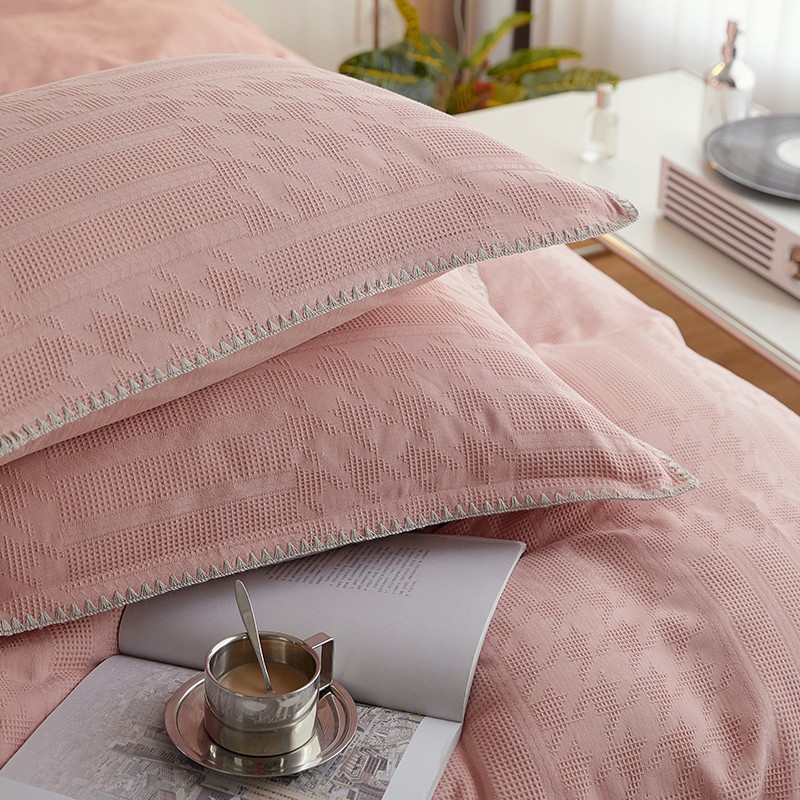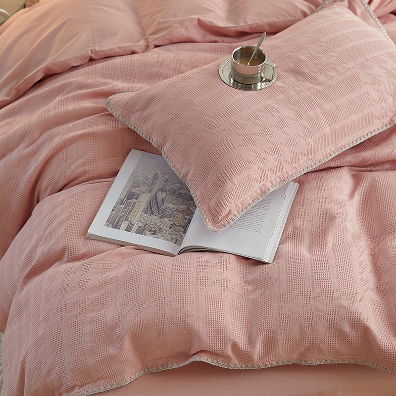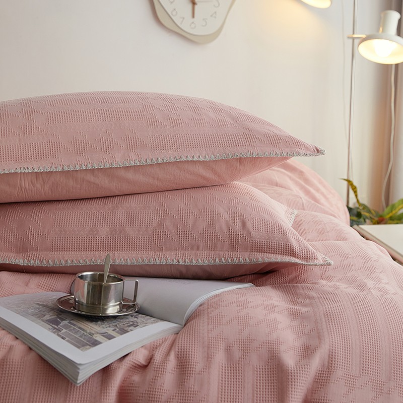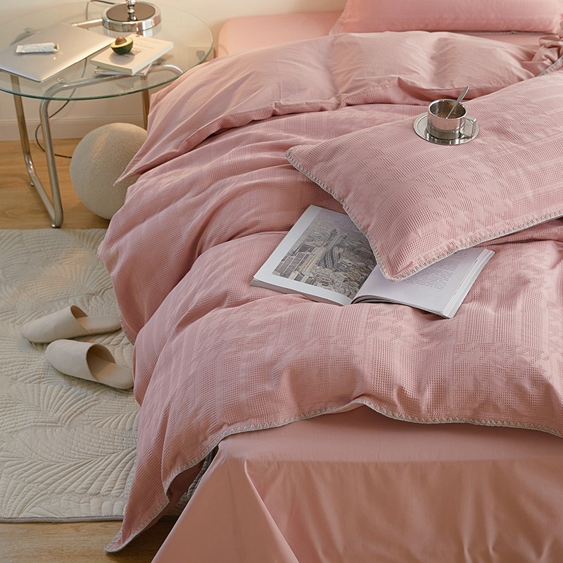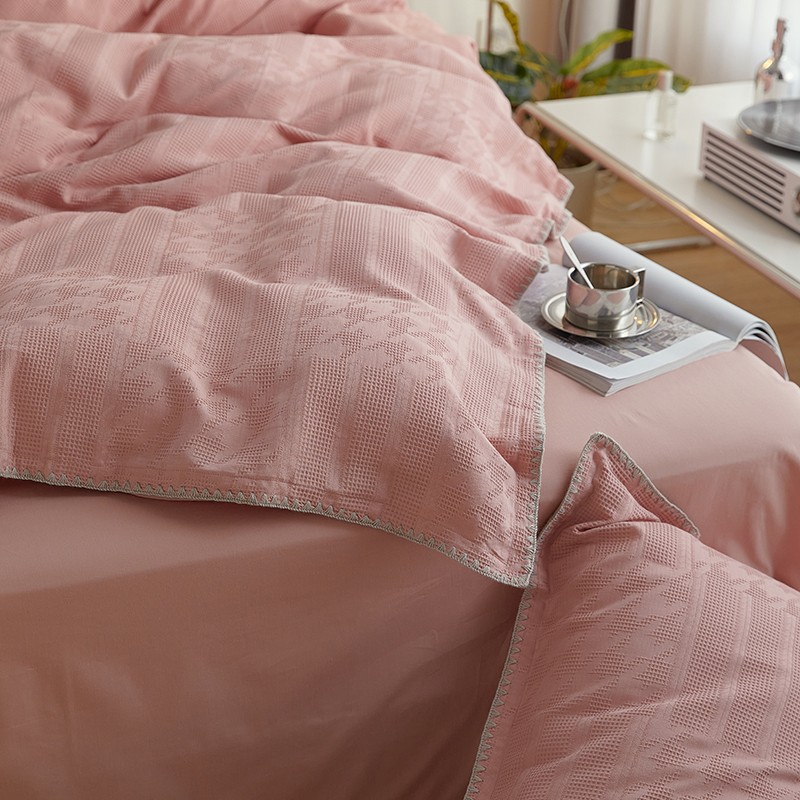 简家居 2022新款千鸟华夫格四件套 皮粉