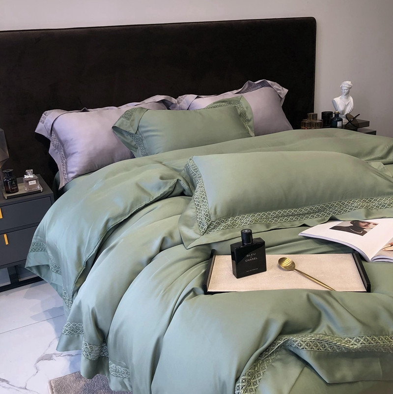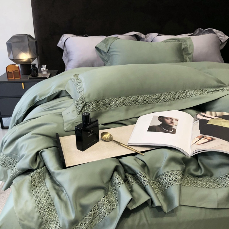 商品名称:太古汇家居 2022新款60天丝镂空蔚蓝系列四件套 蔚蓝-海藻绿