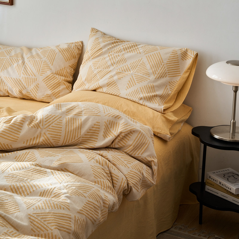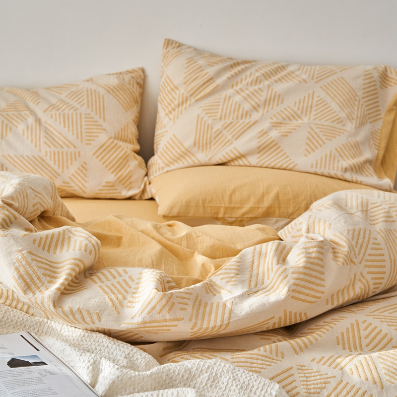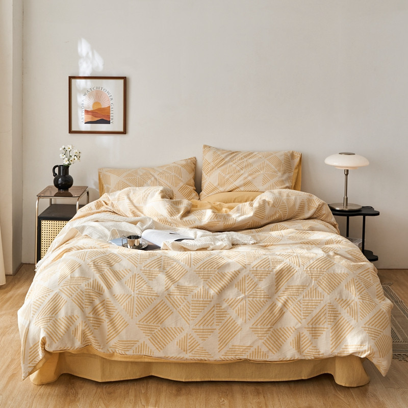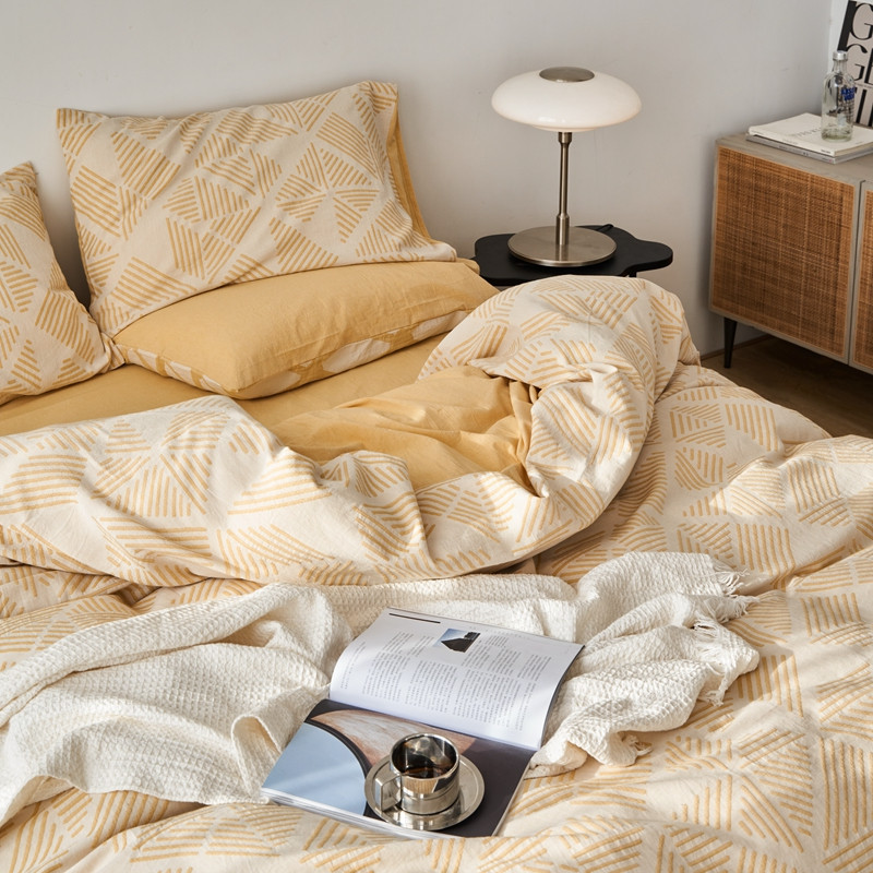 商品名称:简家居 2022新款全棉色织大提花格森系列四件套 格森-黄