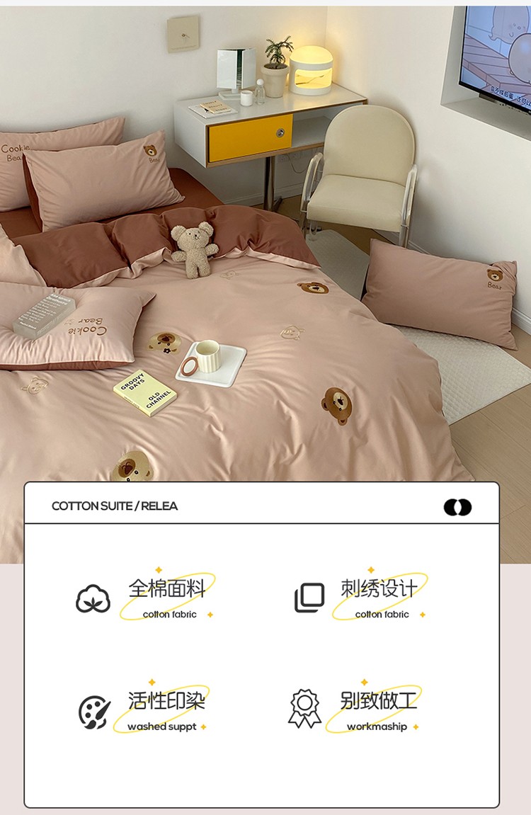 (总)沐棉家居 2025新款全棉双层纱四件套,狗狗派对,花丛小兔,腊肠狗,礼物女孩,萌宠,迷你熊,喵喵酱,曲奇饼干,甜甜圈,小熊一家